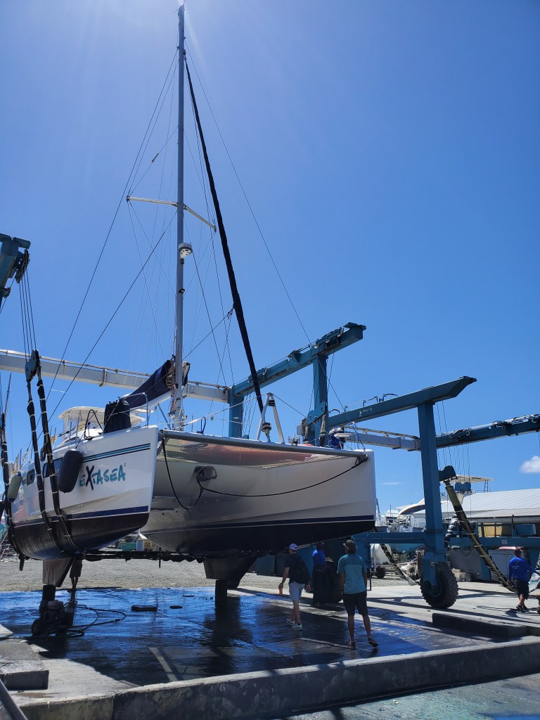Not long after a boat popped up in the BVI. We decided to make an offer and go down for the survey. We stopped in Puerto Rico for a night on our way down and saw Extasea, a 46 Leopard Catamaran. The survey wasn’t perfect but went pretty good. All in all, we felt pretty good about the boat. It was used as a charter boat and they still had several charters to do on it so the timing worked out well.