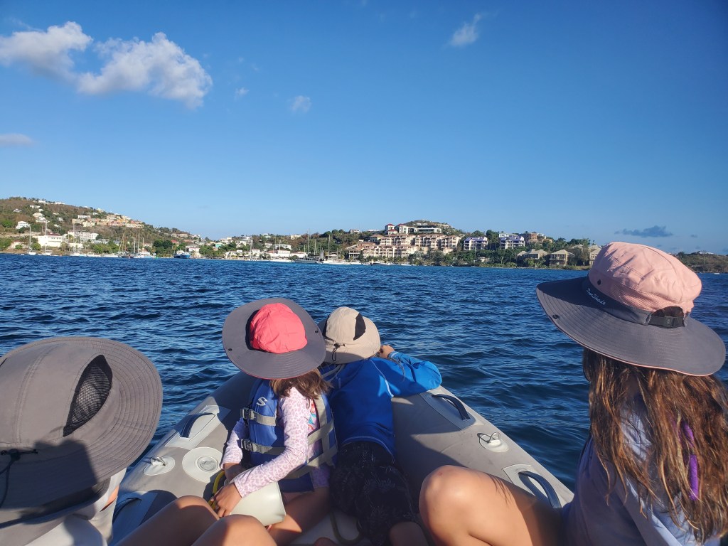 We had an amazing few days exploring St. Thomas on our new boat after some hard work. The kids and I flew home and Cale’s brother and nephew came out and helped him take the boat down to Grenada to be put on the hard, or taken out of the water for hurricane season. There trip down went great, but once they got here a tropical depression came through. We were nervous about him getting the boat out of the water. I was so relieved when the weather calmed down and they were able to get it out. Cale spent several days after that preparing to leave the boat. It was a really hard and stressful thing for him to have to do by himself but he survived.