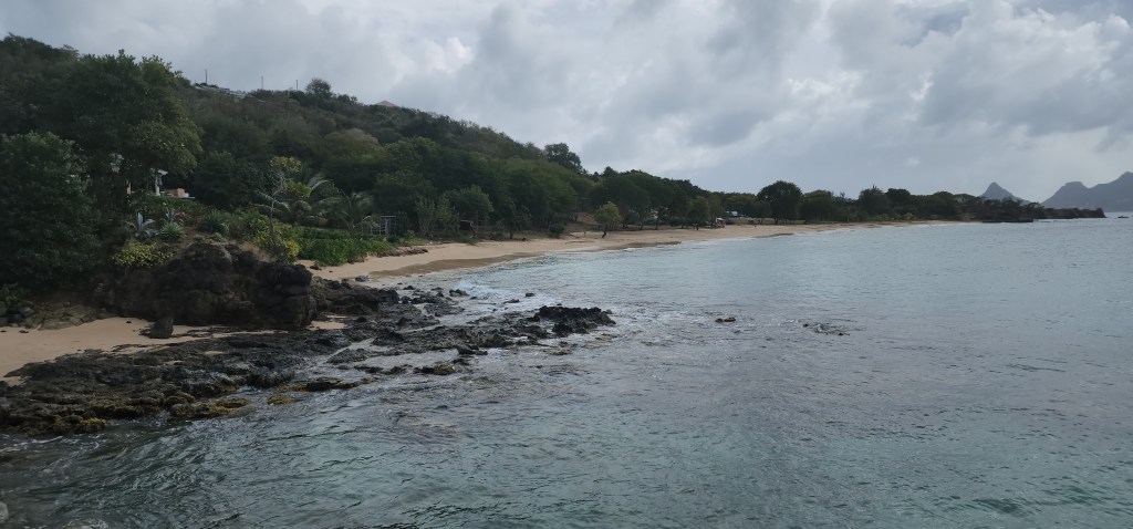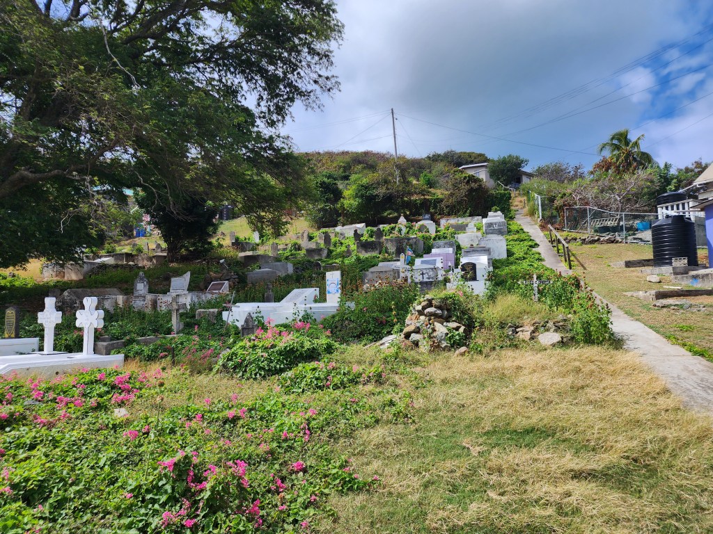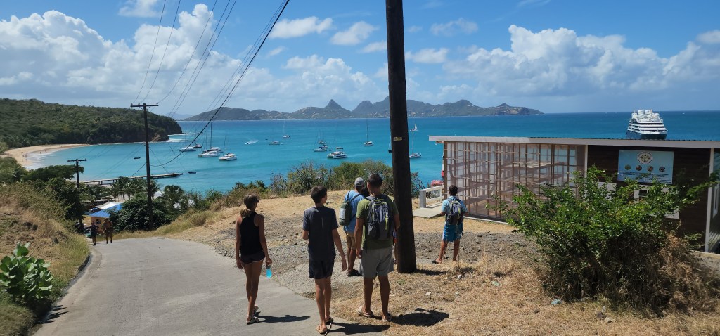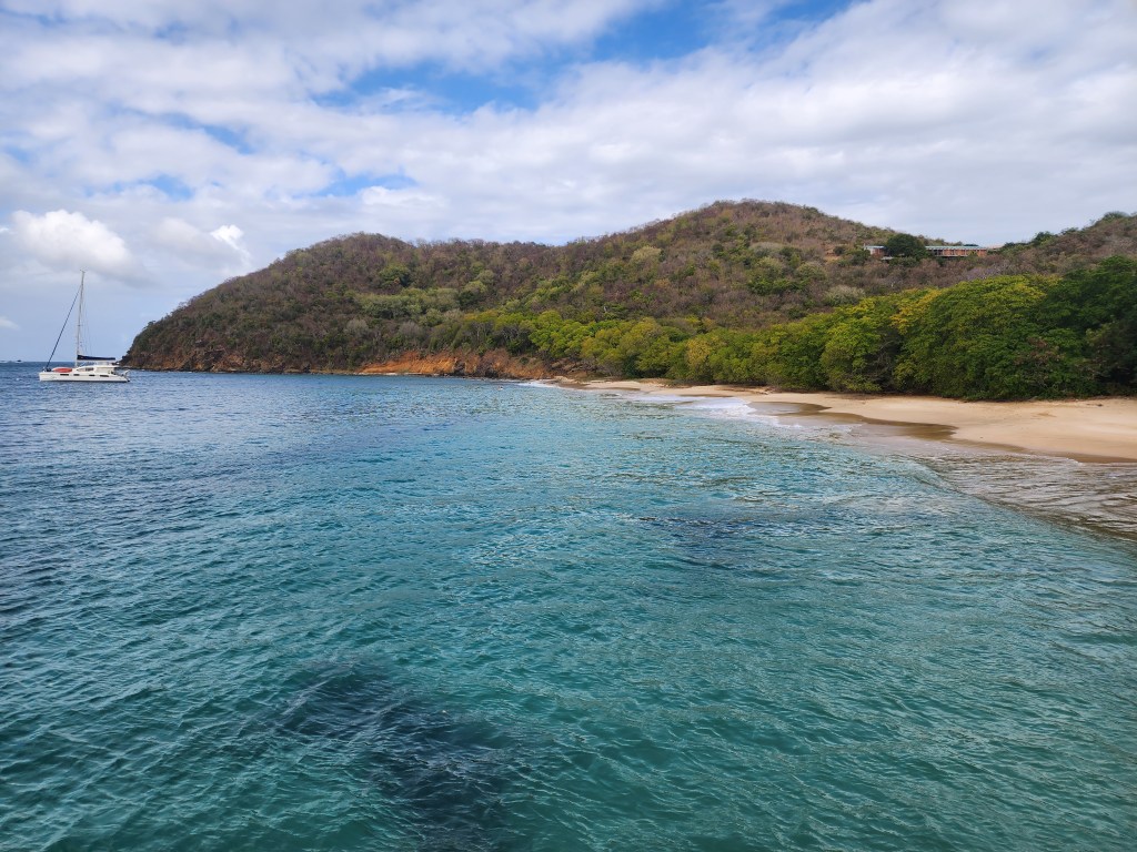 2-9 We moored at Twassante Bay (also sometimes referred to as Troisse Anse). The more popular one called Salt Whistle was packed with people. Our mooring had a line stuck in it that someone had cut off so it took us about 30 minutes to get it sorted out with the help of Hold Fast 2. It’s really beautiful here but super rolly and swirly. There’s not much wind so we’ve been spinning around with the current.