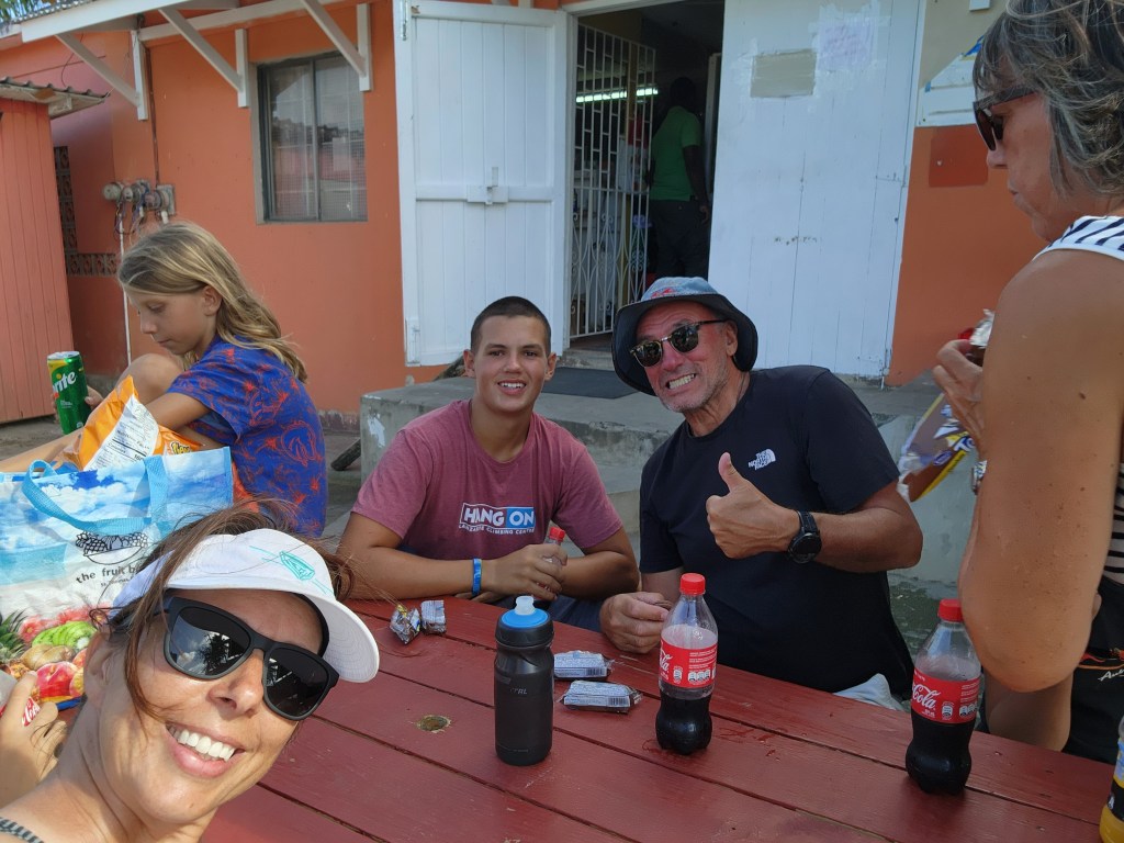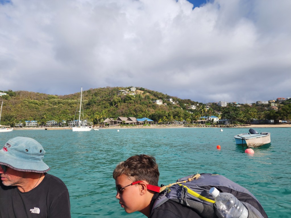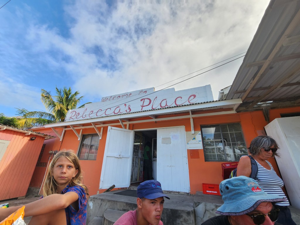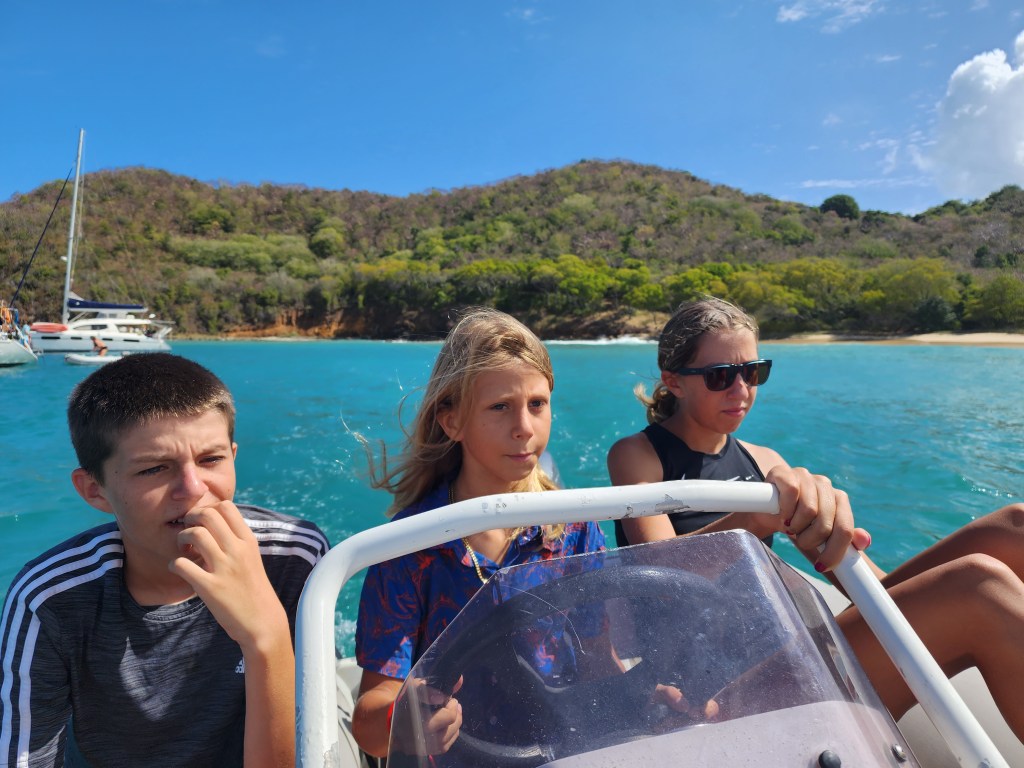 We went to shore to explore and possibly rent golf carts we had heard about. We got hassled by a local, who we came to found out is notorious for causing trouble. He called himself Baby Shawn. It’s a very nice town. People were quite friendly. We got some groceries and even some produce. We met another kid family from France. They are heading to the Tobago Cays now then heading North after so we might try and meet up with them then.