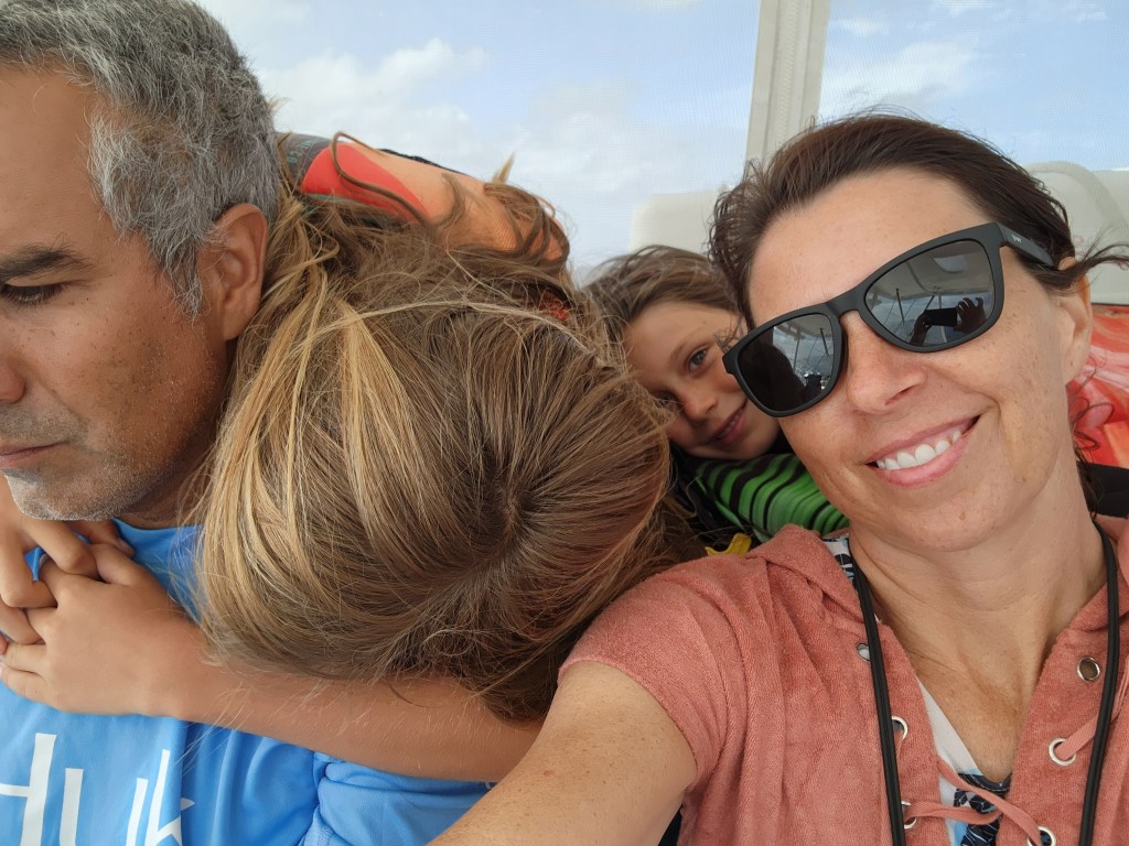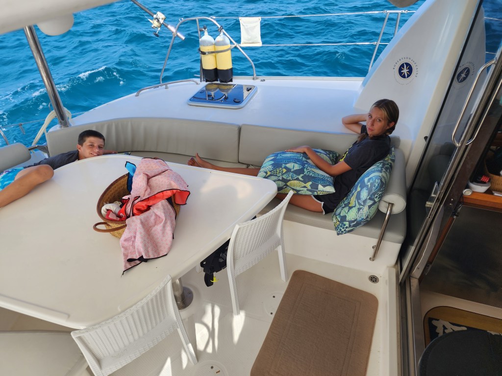 We got back to the boat and relaxed. The kids jumped off the boat. They love to have jumping/diving competitions and just for fun. They do it for hours. Cale and I did one quick snorkel behind the boat. It was a little murky but lots of fish. We saw some large trigger fish that look like they are swimming sideways that I’d never seen before.