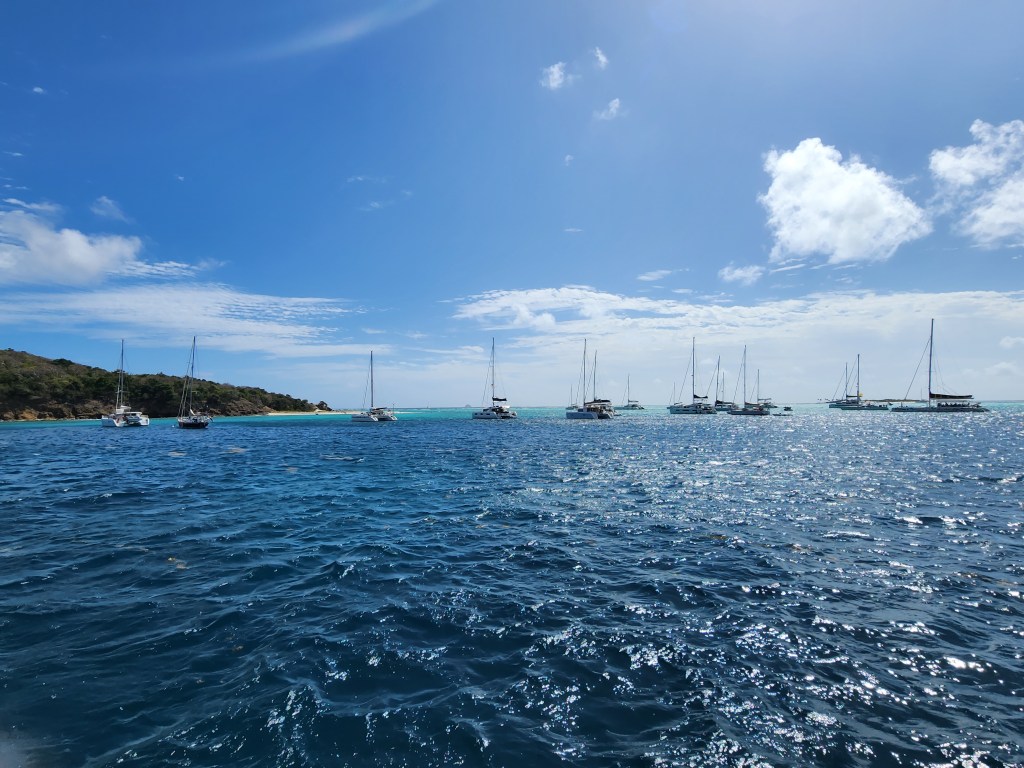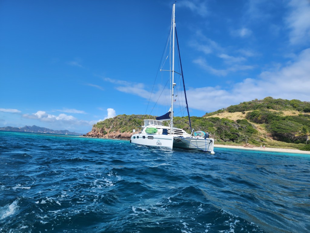 We headed out north of Tobago Cays and were tempted to stop and snorkel horseshoe reef again, but decided against it because a squall was coming. It was only about a 30 minute ride but we finally got to sail. Just our head sail but still better then nothing. It was great.