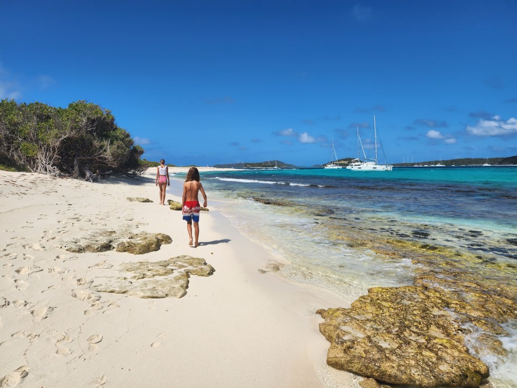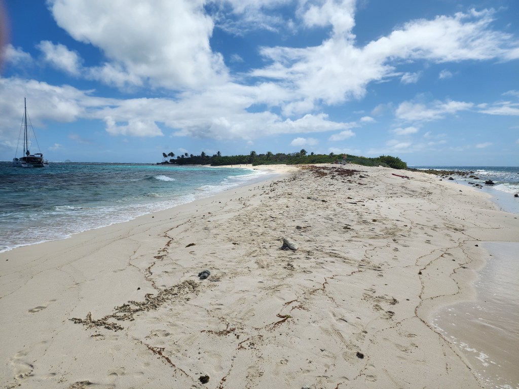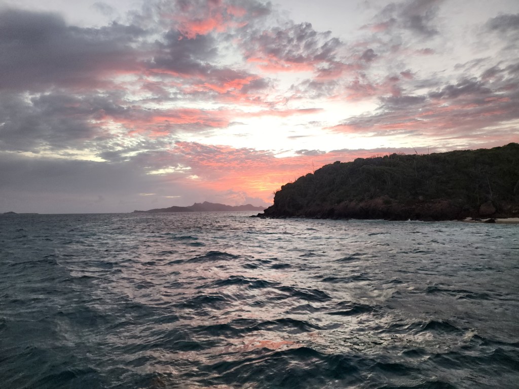 2-7 It was a much calmer night. We got up and going pretty early. Our plan for some time has been to get to the Tobago Cays. Sadly, the weather just hasn’t been cooperating. We finally got a couple days that look like manageable wind so we wanted to get an earlier start so we could make the most of our time. A side story is that we had let our laundry get out of control. I got behind while the grandparents were here and I just couldn’t get ahead with all the towels which are constantly salty. We were going to get a taxi to a laundry mat, but one of the people who have a small restaurant at the beach said they could do it and get it done for us. I expected them to pick it up first thing in the morning, but they didn’t come until around 2. I was very skeptical they could get it done for us to leave the next morning but we were pretty desperate to get it done. They took it. About 6, they called and said they’d bring it back after their dinner guests left. It ended up being 11:30. I had fallen asleep and they showed up with half of it done and the other half dripping wet. Cale hung it up to dry. About 24 hours later we still have stuff hanging all over trying to dry. The other funny party is the stuff that came dry smelled like bonfire which makes sense because all the restaurants do bonfires on the beach. Apparently, our laundry was hanging in the background of one of those bonfires.