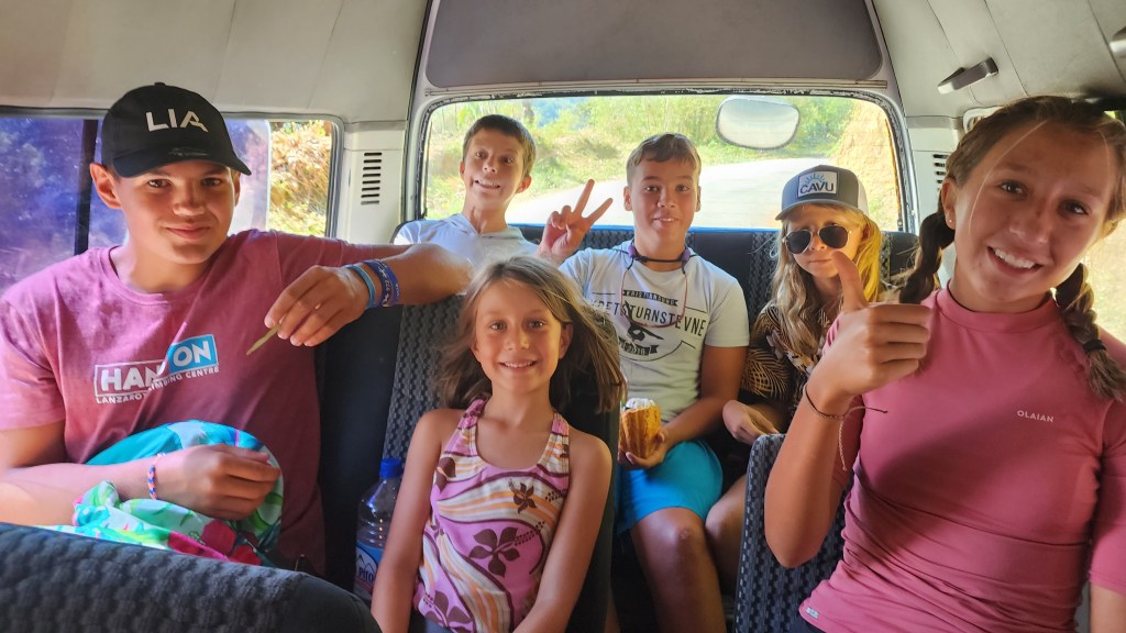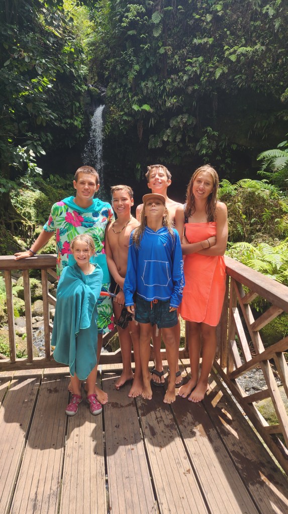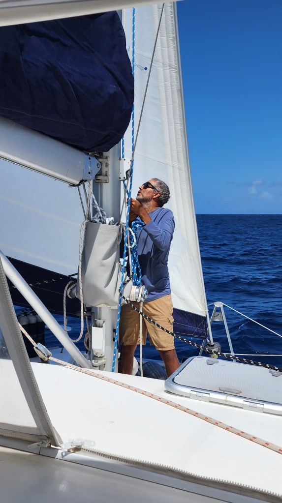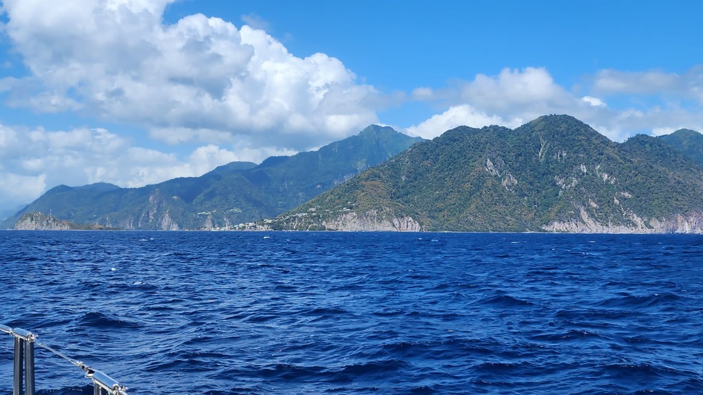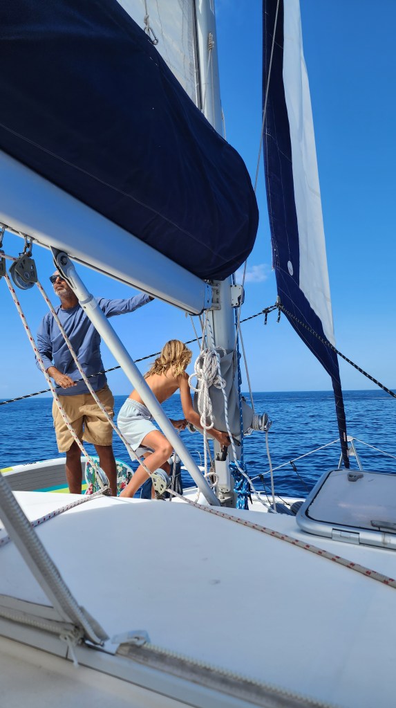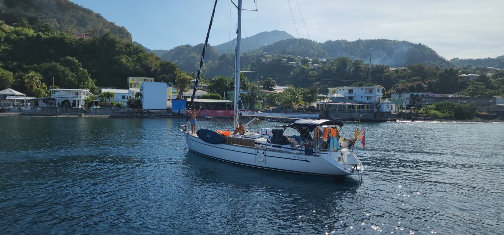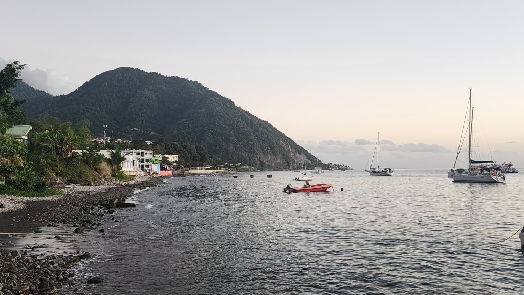 I drove off the anchor and Cale helped the kids run the anchor. We were able to put the sails up almost right away. We were going really good and then when we got behind the volcano the wind just completely died for about 30 minutes and we motored. We were able to get going again with great wind and made great time, going about 7 to 10 knots. The seaside on Dominica is very pretty, steep cliffs and very dramatic. We got a mooring ball with the help of a boat boy with Seacat named Mr. Beans. He got us set up with a couple tours the next couple of days. We are excited to see the island. It sounds like there is a lot here. Cale went to check us in. It’s quite easy in Dominica. You check in and out at the same time and they just give you 2 weeks. It will be nice to not have to check out when it’s time to go. The kids tried to swim off the boat but quickly came out screaming due to jelly fish stings. There is not really a good beach here. The kids got a little bored for the first time in a long while and eventually came up with a making some kind of challenge which eventually had me taking them to shore to gather some rocks and sticks. Cale spent the majority of the evening tackling the new toilet pipes. He is replacing the lines in Kira and Cole’s bathrooms. We are hoping that will eliminate the stink that comes from those heads. We helped as much as possible but it’s a tight space. We cleaned the bathrooms really good after. Hopefully, the problem is solved. A boat called Tiger Lily came by. They are a family of 4 from Sweden. They are 7 months into their year of sailing here and then back to Sweden. They have 2 boys our boy’s ages. We are hoping to meet up with them soon and let the boys play.