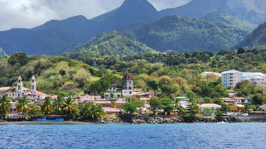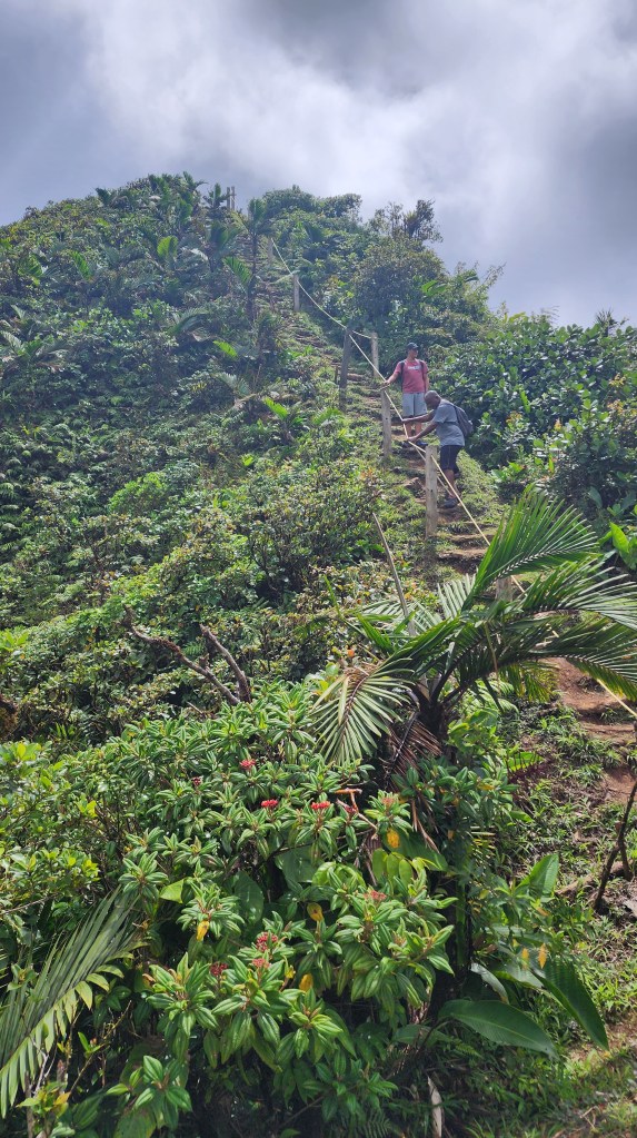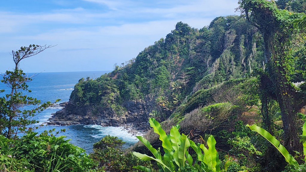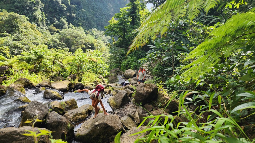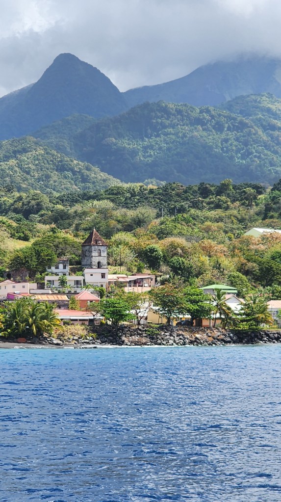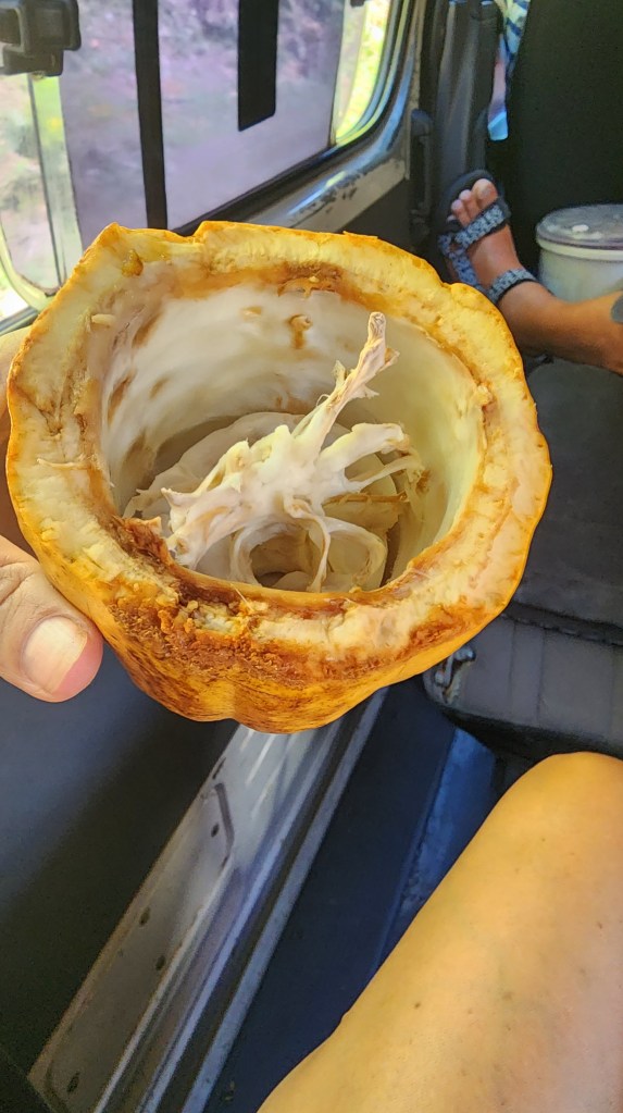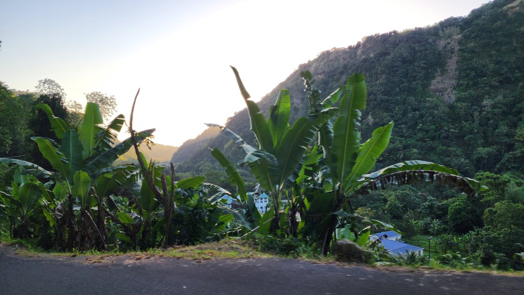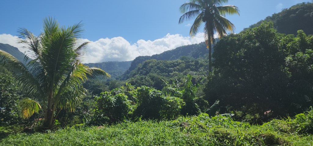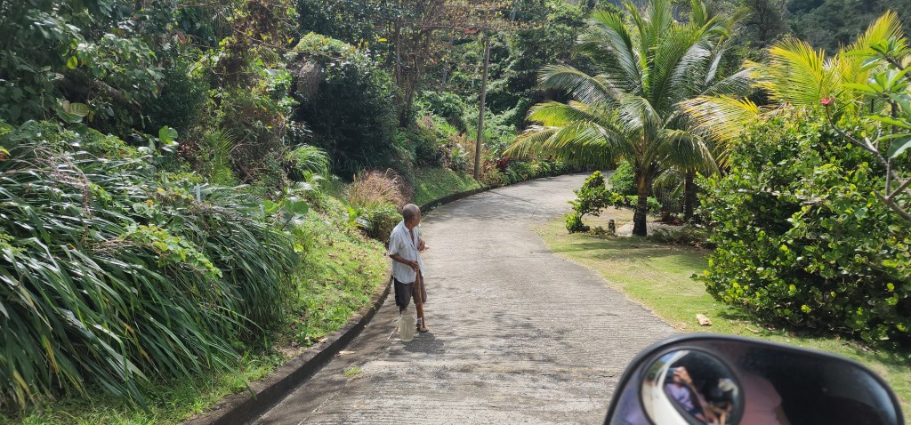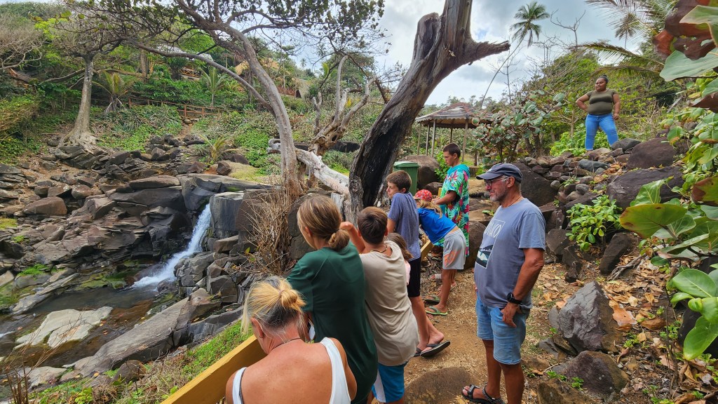 The make smoothies our of breadfruit but need to make sure its when its ripe. Drove by and old historic area where they sold the slaves and hung many of them. All 9 of the volcanos on the island are active. One of the tallest peaks is 4,006 feet and is named Macaque, which is monkey in creole. The tallest peak is Mourne Diablotin at 4,747 the 2nd tallest in the lesser antilles. It was named diablotin, which means devil because of the birds that live up there who make wierd noises. Bay oil leaf to make disinfectant and according to him cured people from COVID. As a side note, Stowe is a bit hard to understand and his most used phrase is a “ya man.”
