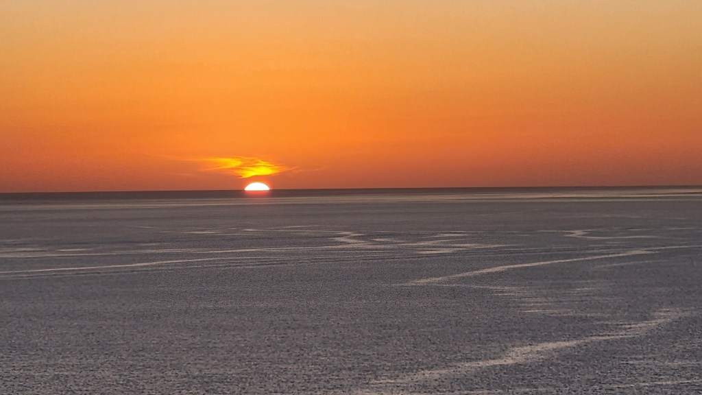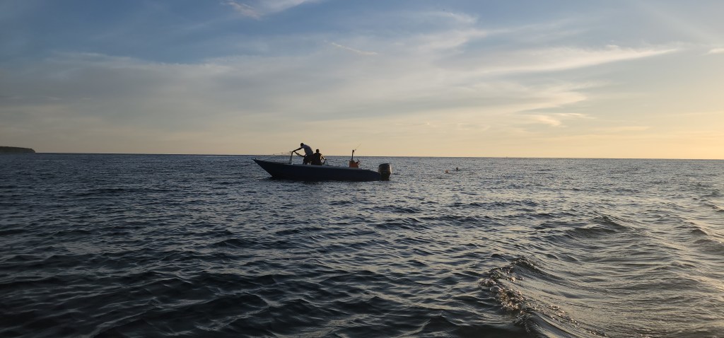 We got some bad news with Kira and school. We found out she has to take at least 6 credits to be eligible to play sports. We worked through that for a while, trying to game plan. We went on an exploration trip to try and surf. We found some big waves, but they weren’t really surfable. We came back to the boat and about sunset tried to snorkel. There was too much swell at the north west side so we snorkeled a few minutes near the fort dock. I didn’t get in, but Cale said there was some interesting fish to see.