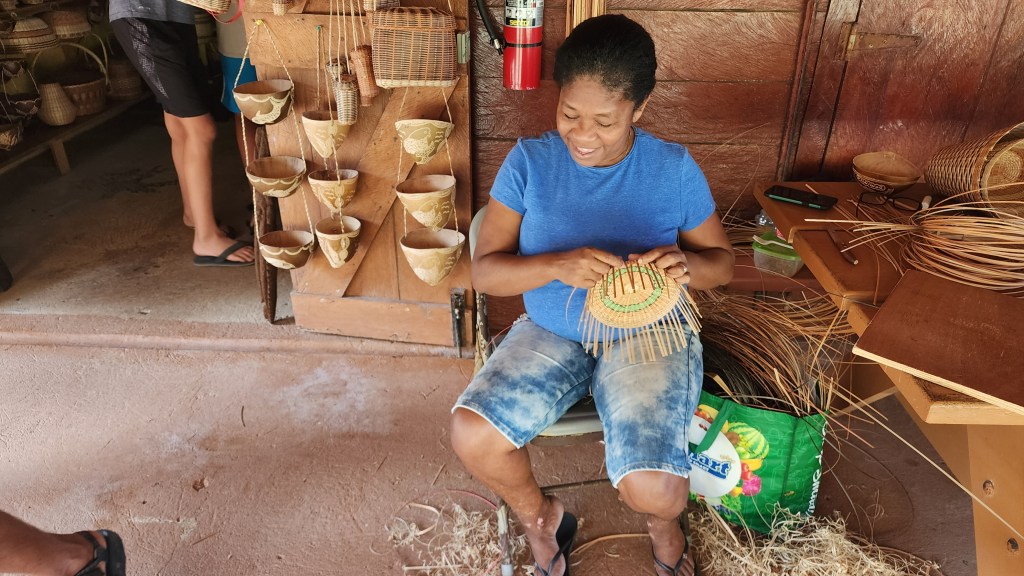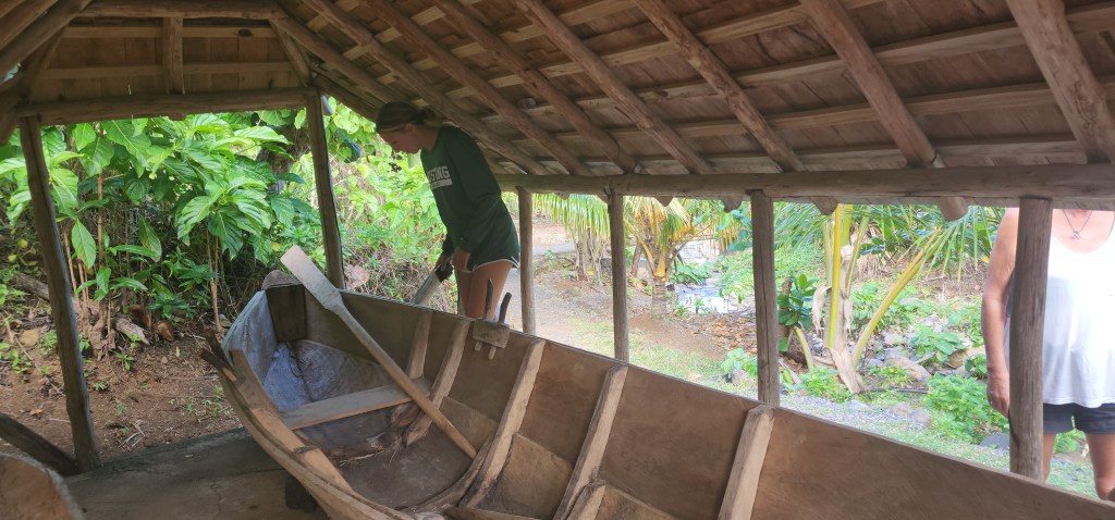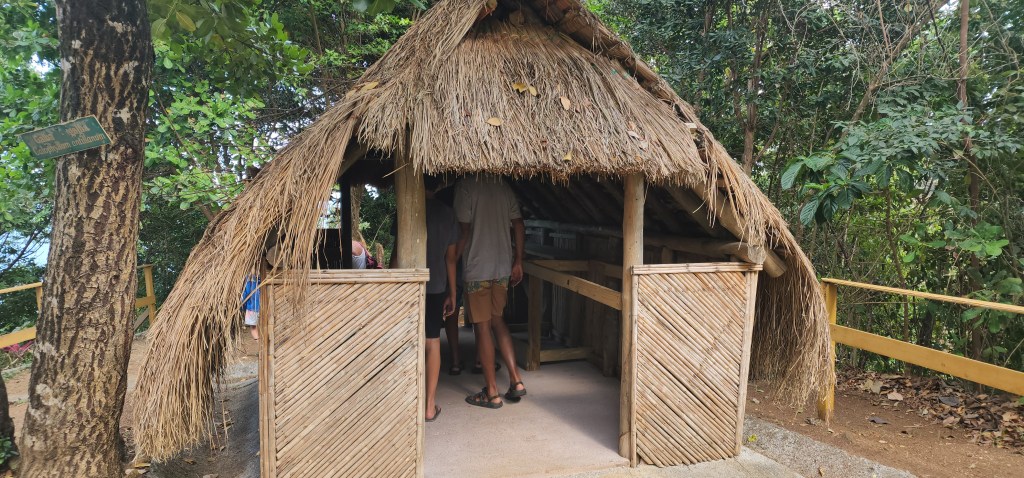 Day 2 of exploring the South of Dominica from Roseau. We started at 9 again. We were all a little slower to get going today. Our first stop was snorkeling at volcano bubble sparkling or champagne reef. It was cool to see the bubbles coming up. We had 2 masks (Cole and Kelsey’s) left on our friends boat, so Kelsey didn’t have a good mask. Cale and I took turns letting her use ours. Next stop was about a 45 minute drive to Emerald Pools. It was really pretty, very refreshing water. The water coming down from the falls was crazy powerful. We drove about an hour to Carib or Kalinago territory. They were called Kalinago people, but Europeans called them Carib. They also painted them as a cannibalistic, violent society that wiped out the Arawak people that were also on the islands. The Kalinago say that wasn’t the case and they were just made to seem that way so the Europeans could justify wiping them out. . It’s one of the only areas they survived because it’s so rugged here they were able to hide. There are about 3,000 left. All the land is communal and they have to be full Kalinago or raised there to buy it. They don’t live traditionally anymore, but had display showing what it was like.