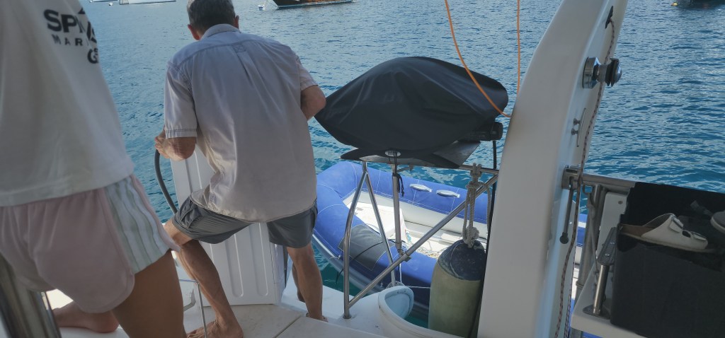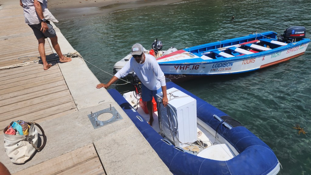 We walked back to the Purple Turtle where the dinghy was and waited to meet Carol to buy the washer. They started talking about being from South Africa and living in BVI and sure enough they knew Mike and Muffy. Carol had even chartered on our boat. Small world! They are retired from cruising and live on Dominica full time. It was a bit tricky getting the washer off the boat. We used the sugar scoops and had the dinghy tied back there really tight. It went pretty smoothly. We just lifted it from the dinghy onto the dock. We got a lot of strange looks. We lost some money on the whole debacle but I’m just glad it’s done and we can move on. So is Cole, as it’s been taking up space in his room for a while now.
