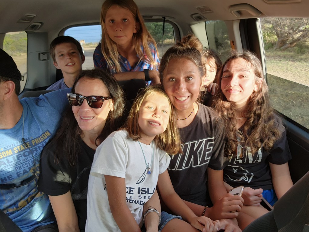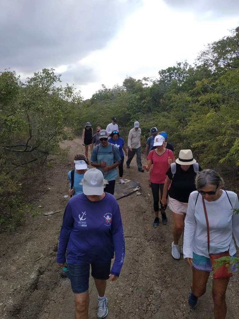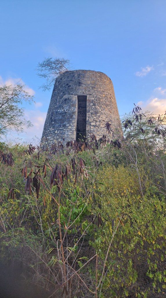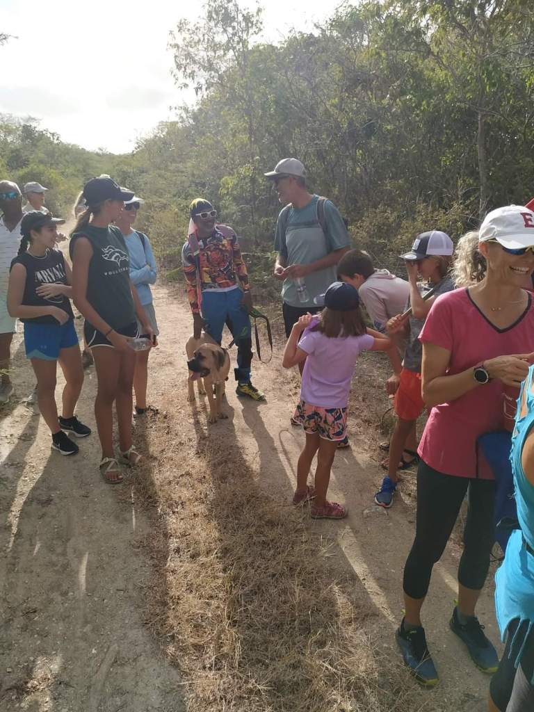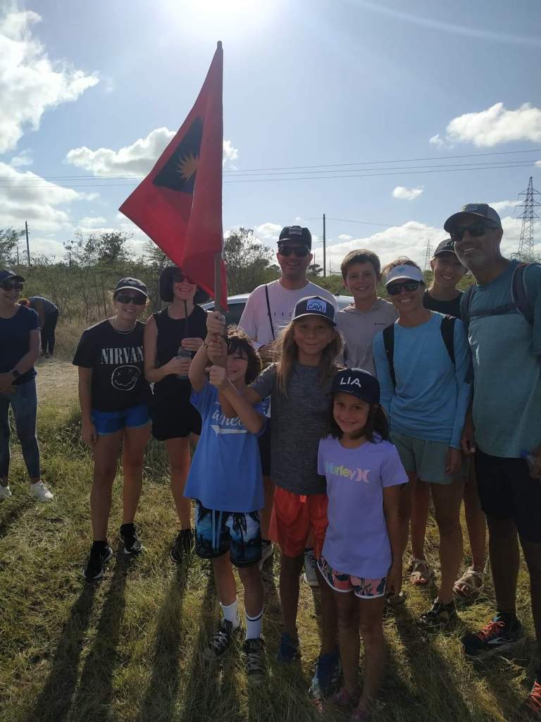 We decided against getting a marina slip because of the wind and lucked out and got a mooring ball just out from the marina. The bad part is we are feet from the boat behind us. Hopefully, they are good moorings. Josh had gone to shore and got the rental car while we were trying to pump out and get fuel. We loaded up and were off to the Antigua Hash. We weren’t really sure what to expect, but I was excited to finally be doing a hash. We got there and everyone was very friendly. I didn’t realize the rules and the clues to get everyone on the right path. This one was on the Blackmans Plantation. We saw their well, walked their property, saw their old house and the sugar mill. Everyone introduced themselves and we were the biggest group so we were chosen to carry the flag. Cade took the job very serious. The kids and us got separated pretty early on and we were behind some pretty slow folks who needed some help so we didn’t see the kids again until the end. They couldn’t believe how long we took. We talked with some interesting people along the way. A couple on a boat from Switzerland. Their crossing took 27 days and was very slow and not much wind. A local lady who was born in Trinidad. A women who sailed across the Atlantic in a homemade boat. She had a stroke 2 years ago but was still going strong. Two ladies who are sail instructors.