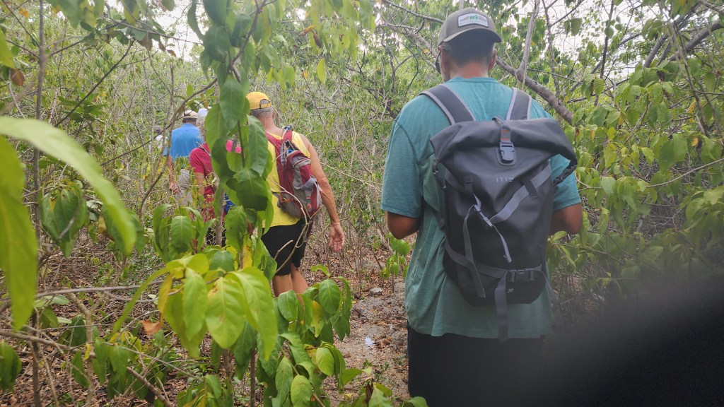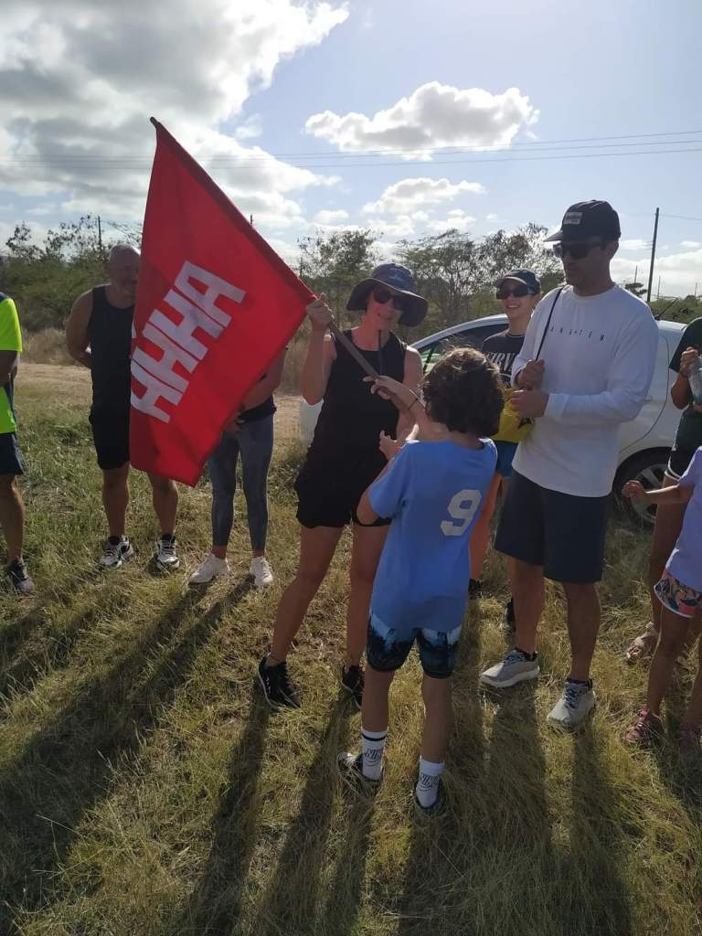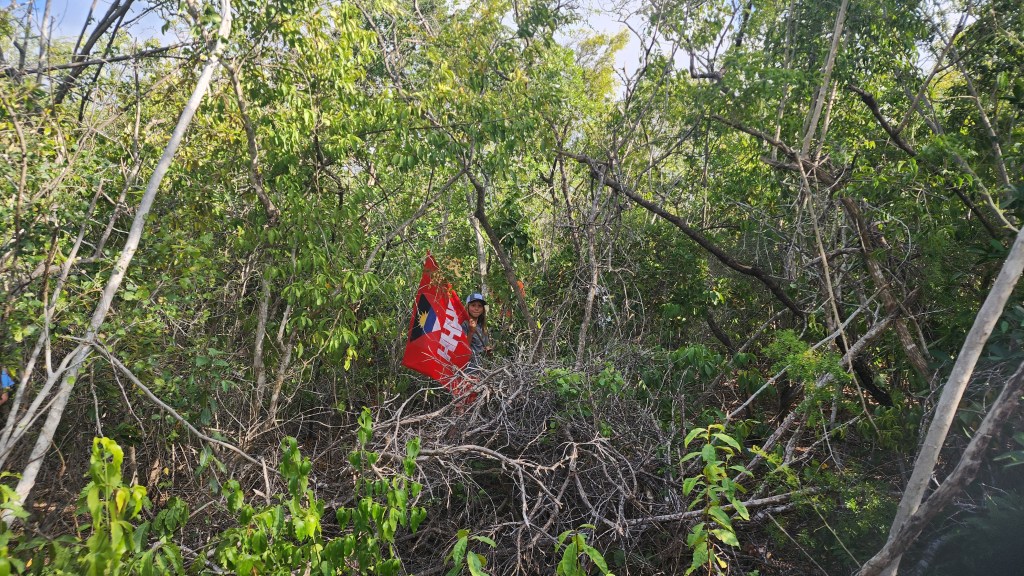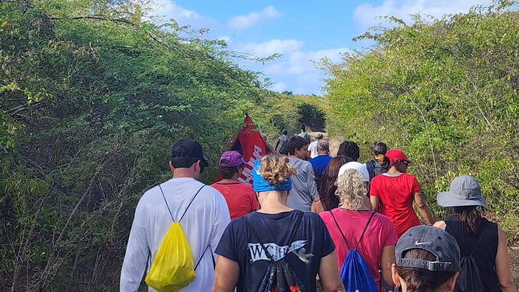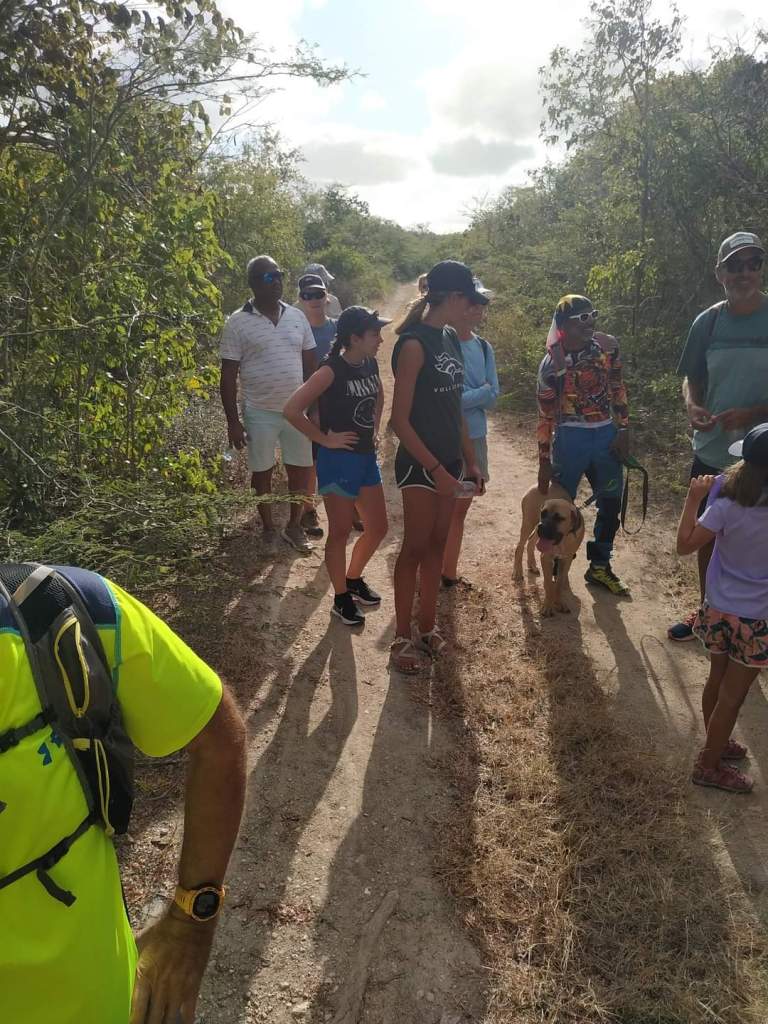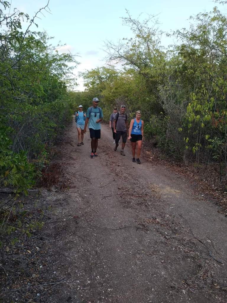 We decided against getting a marina slip because of the wind and lucked out and got a mooring ball just out from the marina. The bad part is we are feet from the boat behind us. Hopefully, they are good moorings. Josh had gone to shore and got the rental car while we were trying to pump out and get fuel. We loaded up and were off to the Antigua Hash. We weren’t really sure what to expect, but I was excited to finally be doing a hash. We got there and everyone was very friendly. I didn’t realize the rules and the clues to get everyone on the right path. This one was on the Blackmans Plantation. We saw their well, walked their property, saw their old house and the sugar mill. Everyone introduced themselves and we were the biggest group so we were chosen to carry the flag. Cade took the job very serious. The kids and us got separated pretty early on and we were behind some pretty slow folks who needed some help so we didn’t see the kids again until the end. They couldn’t believe how long we took. We talked with some interesting people along the way. A couple on a boat from Switzerland. Their crossing took 27 days and was very slow and not much wind. A local lady who was born in Trinidad. A women who sailed across the Atlantic in a homemade boat. She had a stroke 2 years ago but was still going strong. Two ladies who are sail instructors.