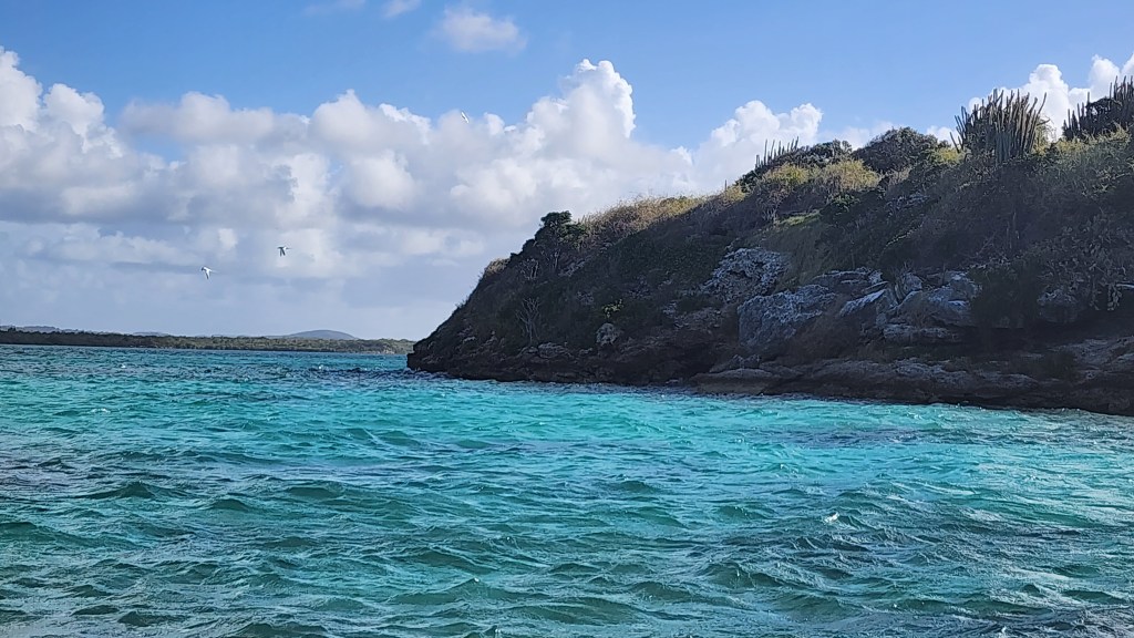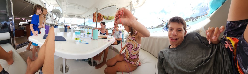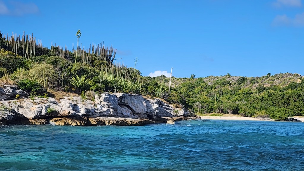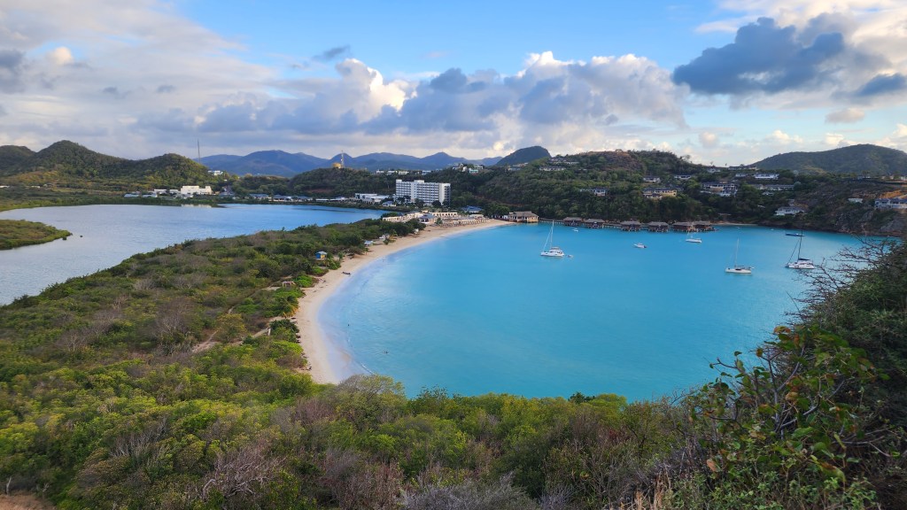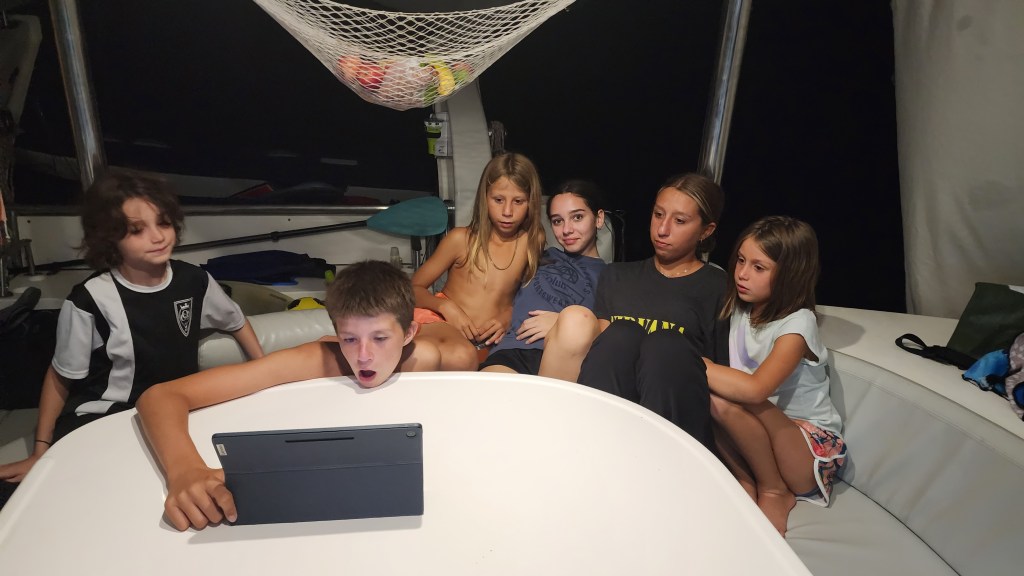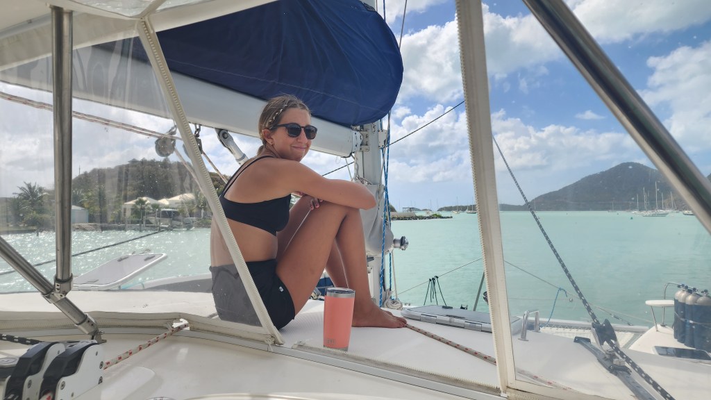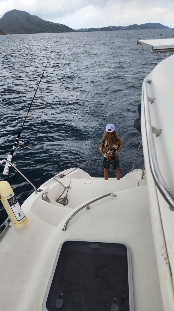Kira went to bed at 4. At 4:30, Cale came up and took over. Cole took a 2 hour shift from 5-6 by himself. We got to Antigua around 9:30 am so 16 hours total. We tried a couple times to get a good spot. One we were too close to other boats. We tried another and were in a channel. There are two channels and the markers are very confusing. We decided to just get a mooring ball. Cade was my helper and everything just kept going wrong. The first one we got the attachment was wrapped around the mooring line and under water so we dropped it and did a different one. We couldn’t lift the ball on the next one because it had no flex, then I dropped the hook (which I’ve never done before). We finally got a ball but it was a bit of a circus. We haven’t had it go that bad ever. Hopefully never again. I blame it on fatigue and bad luck.