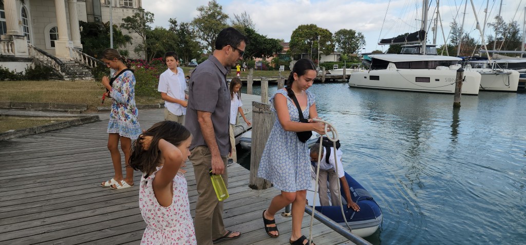 We got up for church at 9, which meant leaving the boat a little after 8. It’s always a good thing we leave early. We dinghied over and started driving but google led us to a private golf course gate and after waiting for 5 minutes they told us we couldn’t pass. The building was a nice church-looking building. We were quite early. Every person that came in said hello and smiled. Most came over and shook our hand. The newly called district president called a new branch presidency. Many of them, including a boy going out on his mission shared testimonies. They were all very touching. The wife shared of their struggles with wayward children and how glad they all found their way. The 2nd counselor shared that God provided what he needed (which was a wife because whenever he told someone he dated he was a member they disappeared and wanted nothing to do with him. His wife had just been baptized the week before and he knew he would accepted the call to serve in the presidency. They had 2 baptisms happening today. It was very neat to see all the progress of that little branch and how it’s blessed so many lives.