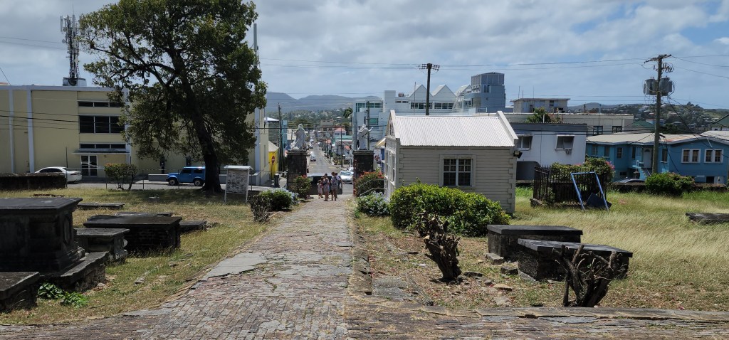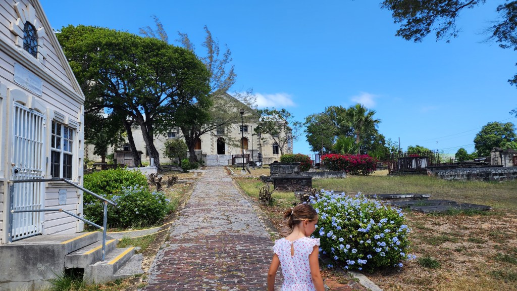 After church, we stopped by and old Angelican church and cemetery. We went in, as respectfully as we could, and listened to part of the sermon. The coffins, which are all above ground on the outside, seemed very old. Most didn’t have names or dates.