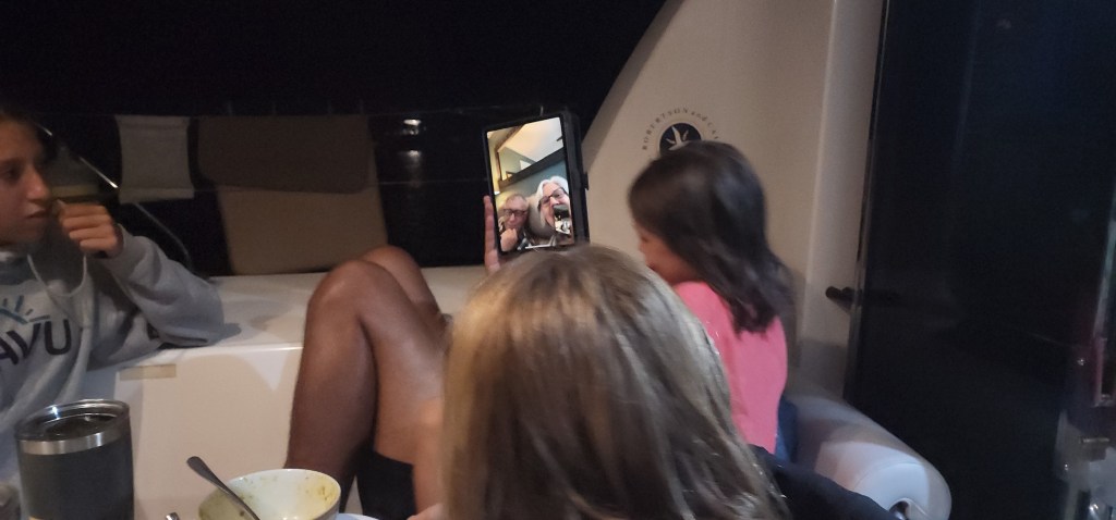 Today was a get ready for guests day. We started cleaning the galley and cockpit. I had to defrost a fridge because it was iced over. Good news is the other one now seems to be working after getting it worked on yesterday. I had Cade clean out one of the bilges. I also started laundry for the first time with our new washer. It’s pretty manual but seems to work pretty good. You fill part way with water then add the clothes. Then, you add a little soap and more water. You turn on the agitator. Once its done, you drain the water and wring out all the clothes and then refill with water and put the clothes back in. The last step is to drain the rinsing water and wring out the clothes again and then hang to dry. As long as it lasts for a while I think it was a good choice. The hardest part us getting things to dry.