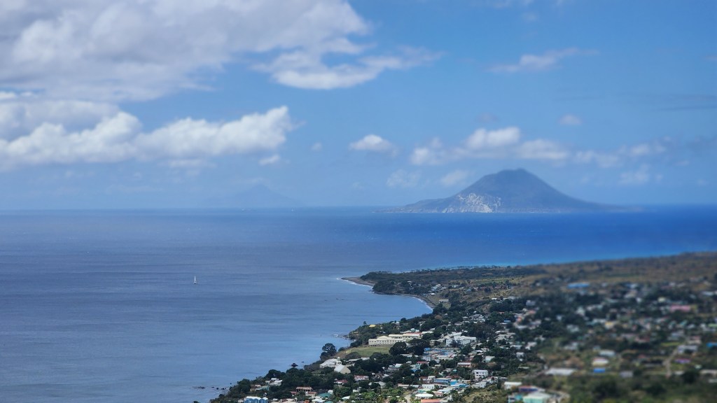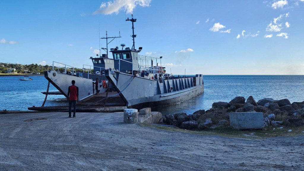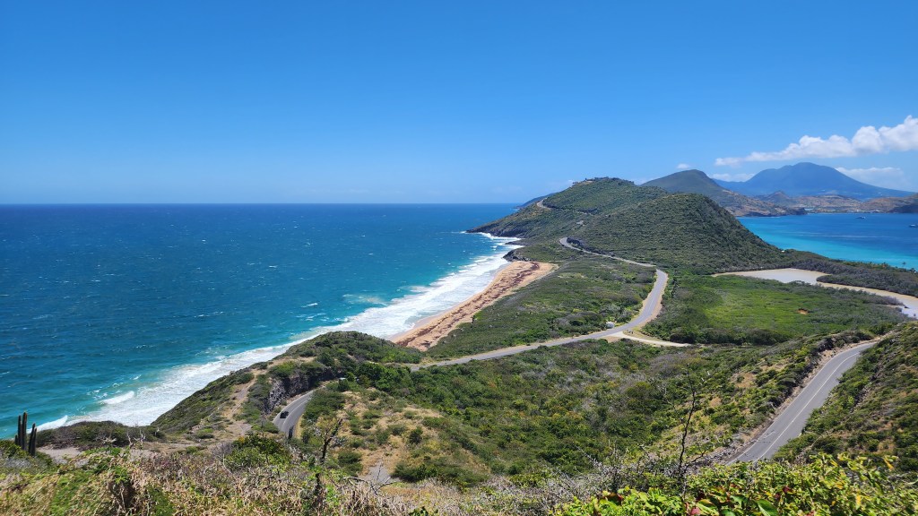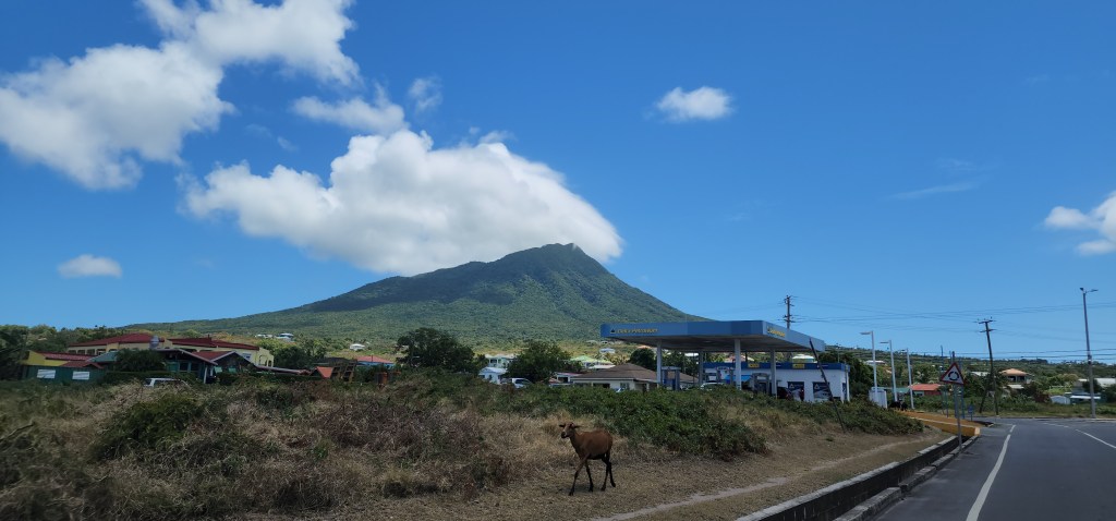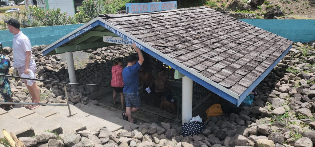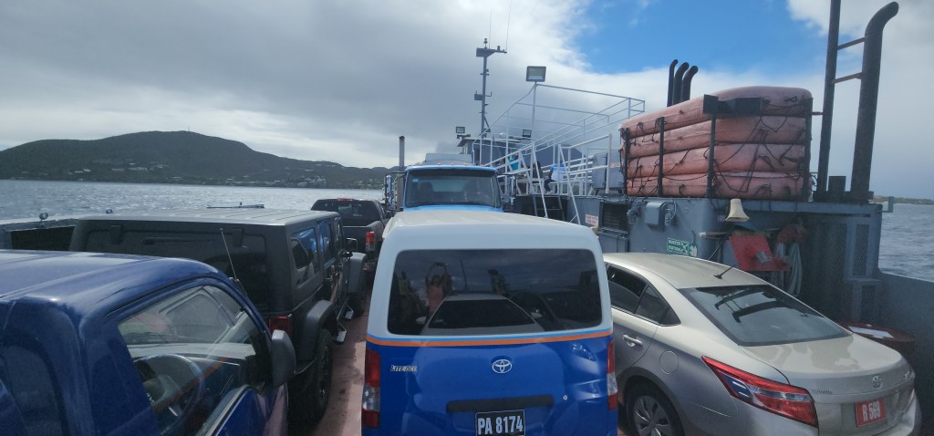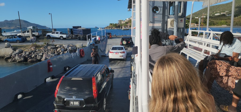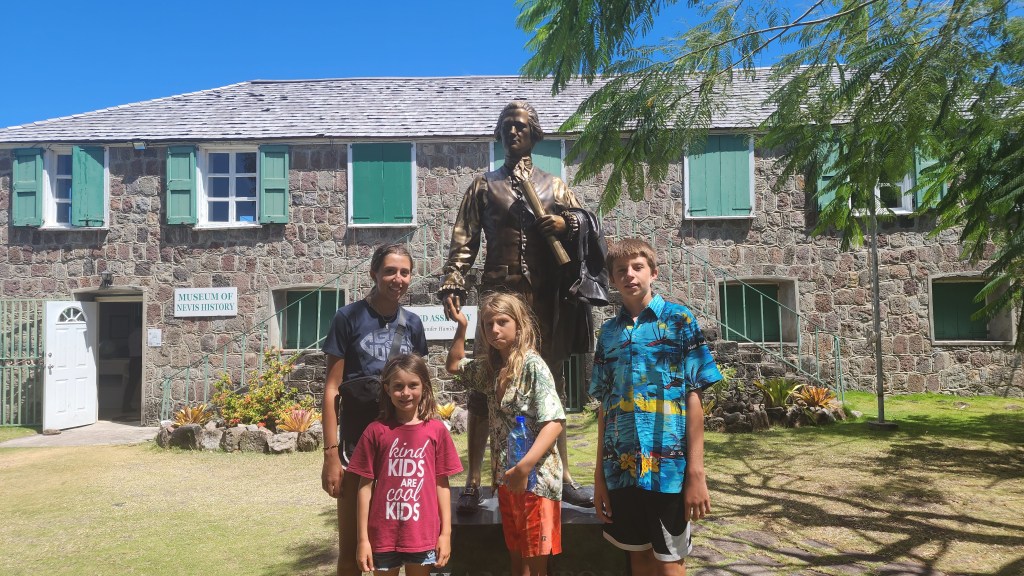 We got up early to catch the sea bridge ferry to Nevis. We had heard it was a 15 minute ride across and that it left every other hour starting at 8. We got there at 7:30 to be sure we got a spot. It was late. Everyone parked so they could back on. It was a bit rough getting the car up the ramp. We got put right up at the back between a big truck full of fruit and another big truck so we couldn’t get out. I was worried we would get sick, but it wasn’t bad, even though we were boxed in super tight. It was a little weird that the truck next to us was swaying so much. It was about a 30 minute ride. Nevis is beautiful. It’s also small. The whole island is basically one big volcano and then land surrounding it. We drove into town first to see the museums. One was about the history of Nevis, slavery and how it came to be. It never gets easier to hear about how horrible it was for the slaves that were brought here. The more I learn the more I continue to wonder how? why? It’s just so horrible. The second museum was about Alexander Hamilton. It was the place were he was born. It was small, but very interesting. Having read a lot of the book and being big fans of the musical it was interesting to see where fact ended and fiction began.