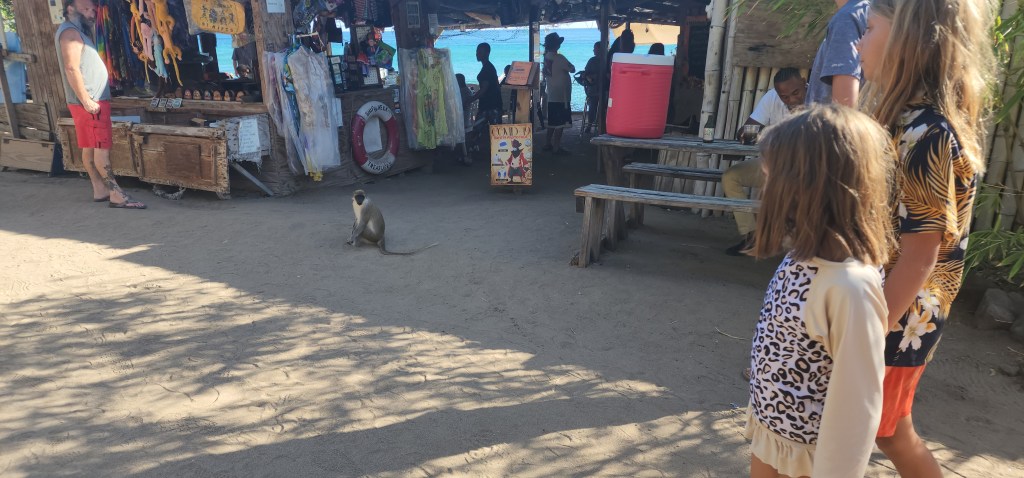 We found Blackrock Beach which was huge black rocks with giant Atlantic waves crashing. Cole and Cale bought some button up shirts and Kelsey got a monkey. We walked down the tires towards the water. The entire drive was very cool. The island goes from desert looking, almost like Idaho on the south side, to ocean and green grasses, to rocky, then jungle near the volcano. The towns between all had a lot of character, with old churches and colorful small houses. We really enjoyed the variety of what it has to offer. We stopped and got dinner at the container food trucks and then groceries. We spent about 800 ec, so 2-250. It was the most American selection we have seen since we’ve been out. It’s expensive, but kind of nice to see foods we are used to.
