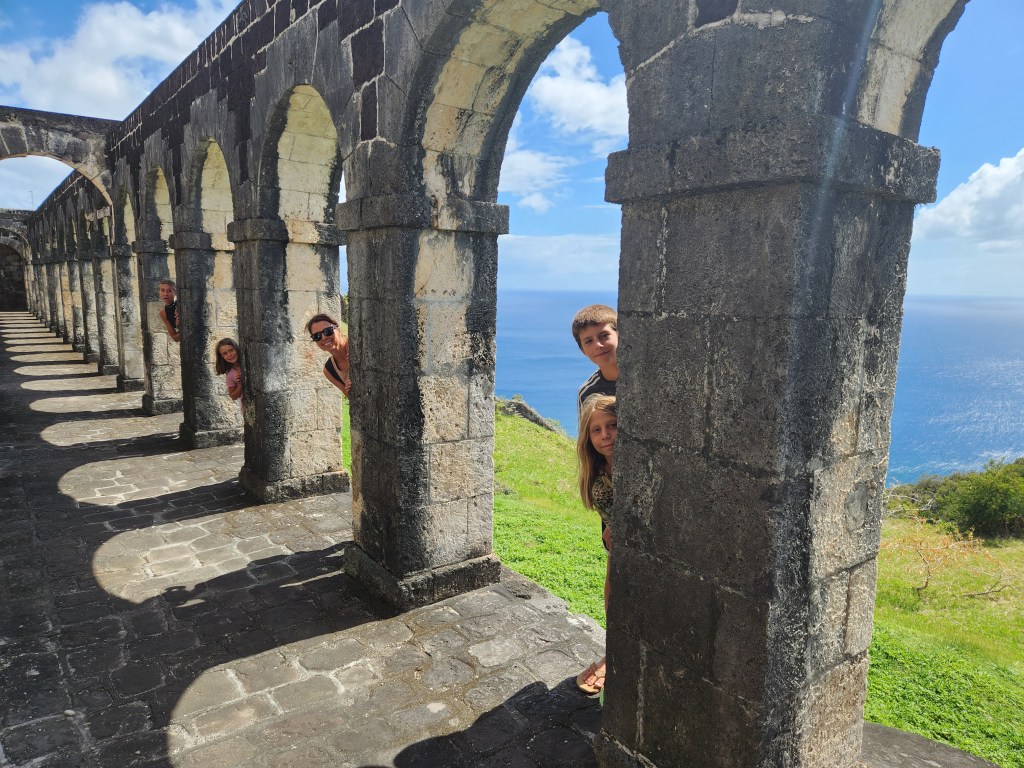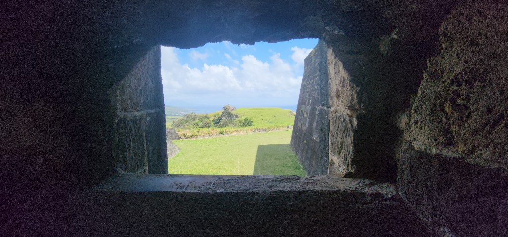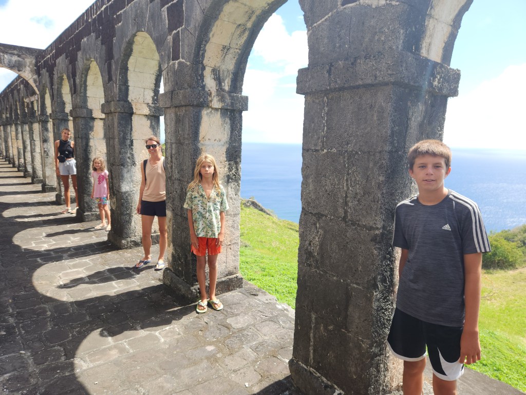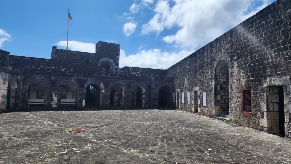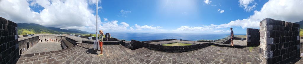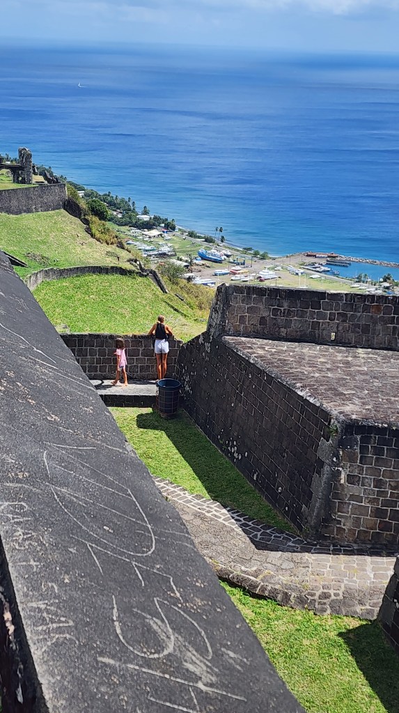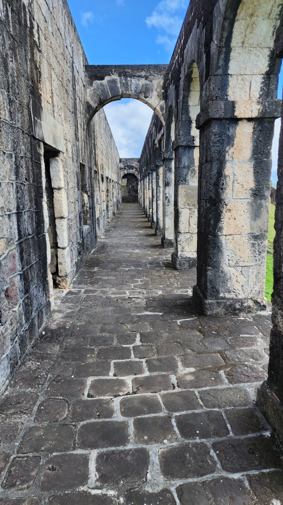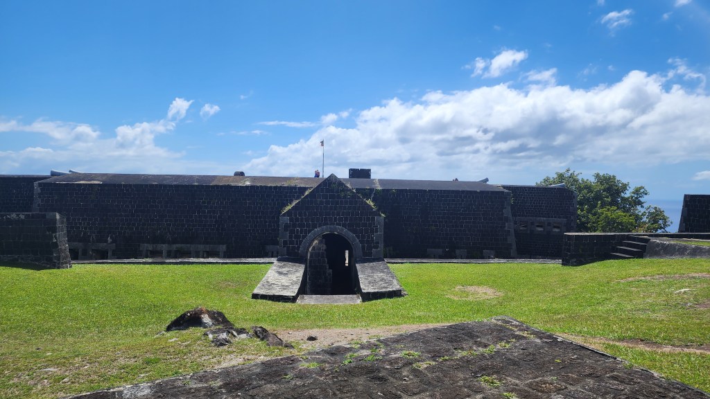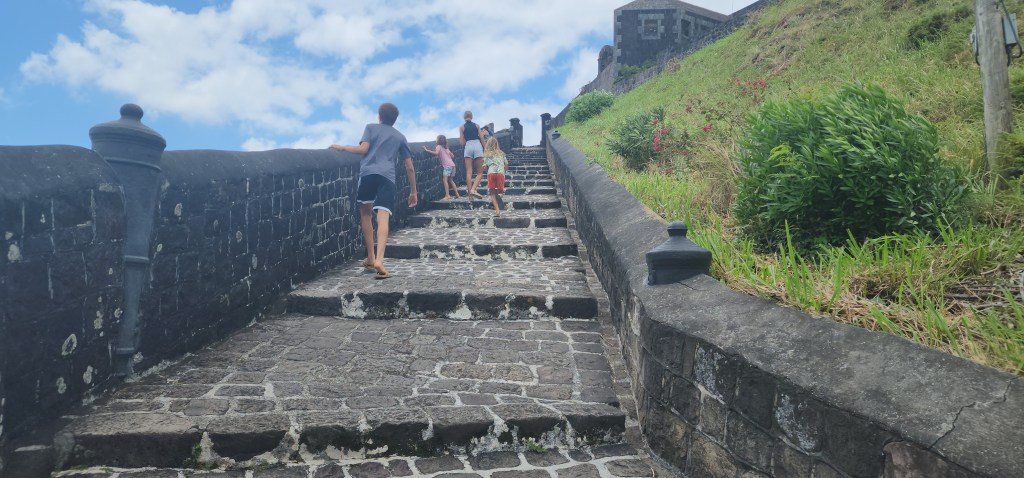 We left at 11, and started driving the west coast of the island to Brimstone Hill Fort. It is the best fort we’ve seen so far. It’s been very well maintained and improved. It was originally British. There was a month long siege when the French tried to take it over and finally did. Then, just a year later in the Treaty of Versailles the British got it back. Each room had interesting facts including life as a soldier, how people came to be there, food they ate, ways they punished soldiers and so much more. The hardest, saddest, and most compelling part for me was learning about the slaves who were brought here. They were the ones who chiseled, moved, and built the huge fort. It was hard to comprehend what they had to do. The British made the slaves do it because it was felt that the harsh heat was bad for the British to do themselves. It’s so sad to learn about.