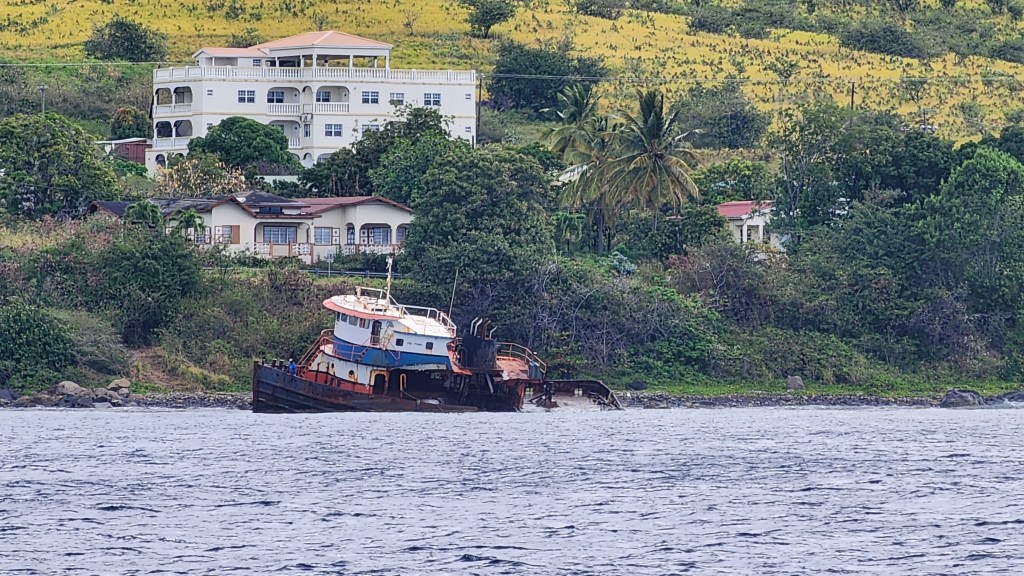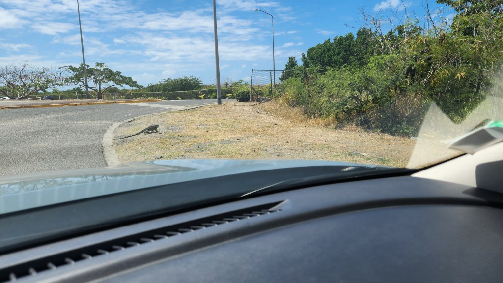 I had Cale dinghy me over and pick up our rental car at Payless. Cale has a bunch of projects on the boat so he pretty much wanted the kids and I out of the way. Plus, with the guys we hired to wax the boat we just needed to be off. I got the car. They drive on the right hand side of the road with the steering wheel on the left, so the same as the US. When I got back we had to move the boat to the other side of the dock so the guys could polish the other side. It went smoothly. We talked with a guy with a boat that pulled in behind us. They were on a mooring ball and a charter boat didn’t secure his lines correctly and it came off and hit his boat. It left a big dent. They are now working in the insurance claim.
