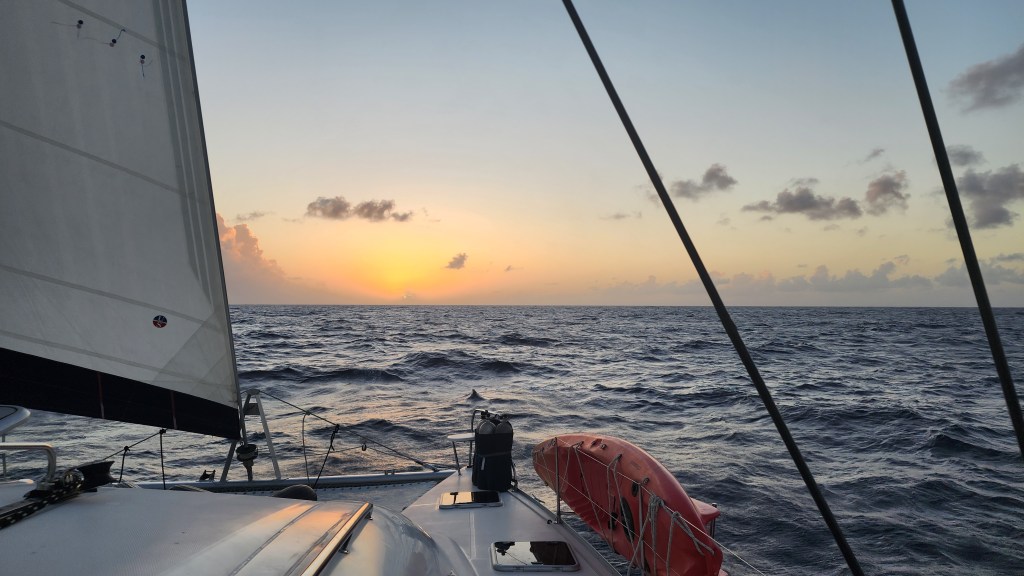 4-3 I ended up doing a shift until 4. Cade took a shift with Cale on the couch and then Cole came up and helped. I slept from 4-7, then slept and was up until we got to Charlotte Amalie around 12. So, 18 hour overnight.