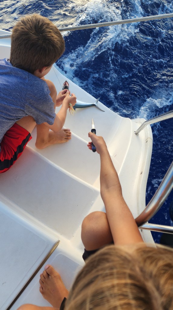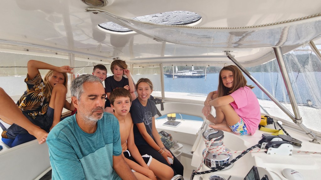 Cale went to get a different pipe for the bathroom clog and ask if we could leave a day early from the marina. The kids did homework but mostly cleaned rooms and the boat. We reviewed with the boys once again how to properly clean the bathrooms. Cale came back pretty mad. Not only would they not refund us if we left early but they were going to charge us almost double what we paid for the same slip last June. They said it was a 50 ft cat slip and so we had to pay for the full 50 feet instead of 46. The thing that was the worst to me was that she said “well if you are cost sensitive you should have asked” (which we did try and call and email to find out cost but they never responded) but what the heck does that mean, “cost sensitive.” It makes me think they just charge whatever they want and the big yachts pay it. So frustrating! I did some laundry in our small washer. I had the first 2 loads done and hanging to dry. I put the drying rack in the sun and was just grabbing a line to tie it to the boat when a gust came up and the whole rack and all the clothes went in the water. Thankfully, I was able to grab the whole thing out. Sadly, I had to start over with washing them all.