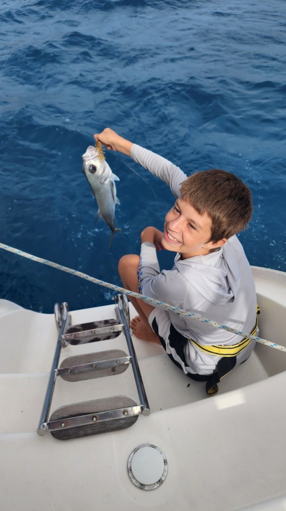 We got back and Cale took a cab to the airport to meet the Boones. They got a cab back and arrived a shirt time later. It was so fun to see them. The kids quickly showed them around and they got settled and then we were off. The guys throwing lines took off the front a bit too soon but thankfully it was okay.