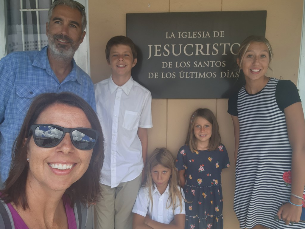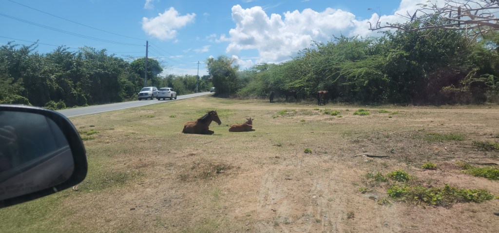 4-16 None of the cab drivers were responding so we went to shore around 9 not knowing how we’d get to church. We were worried about leaving the dinghy but we pulled it up and put a lock on it using a a tree branch. We got ahold of a lady to give us a ride. She said she’d come, but we got a little nervous. She finally came about 9:30. She was the sweetest lady. She spoke some English. Her husband died and left her the business. She recently became care taker to her brother and his wife who needed constant care. Though she had all that going on she had the sweetest spirit about her. She was, however, a terrible driver. Several times she was checking things on her phone while driving off the road. It didn’t help that several times we came around a corner and there were 6 or 7 horses were on the road. We found out later there are around 14,000 people on the island (there were 15,000 before the hurricanes in 2017) and 3,000 horses. They are everywhere. We found the little church building. There was another plot of land that it used to be on that was donates to the church by a member who past away but it was hurricane damaged and they didn’t rebuild it. Now they rent a building. The branch is very small. There are just 8 active members . There was another family visiting from Florida, the Nelsons, who bought property here. The member said how glad they were to have children there. Sacrament meeting was good. The missionaries spoke. We tries to listen through headphones, but it was very crackled and difficult to hear. There were no kids classes so we all joined the adult Sunday School class. It was a good lesson, at least from what I could follow. He told how horses get hit all the time on the island ( our cab driver on our way back said 12 a year) and the night before he had been warned to slow down and missed hitting a horse.