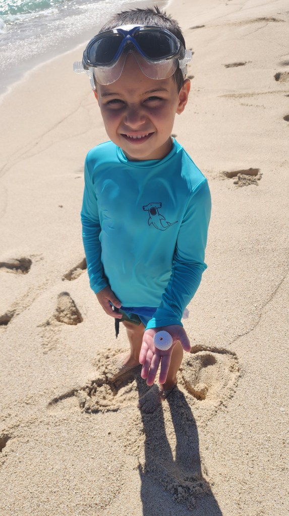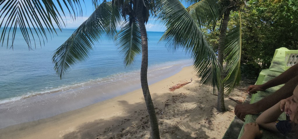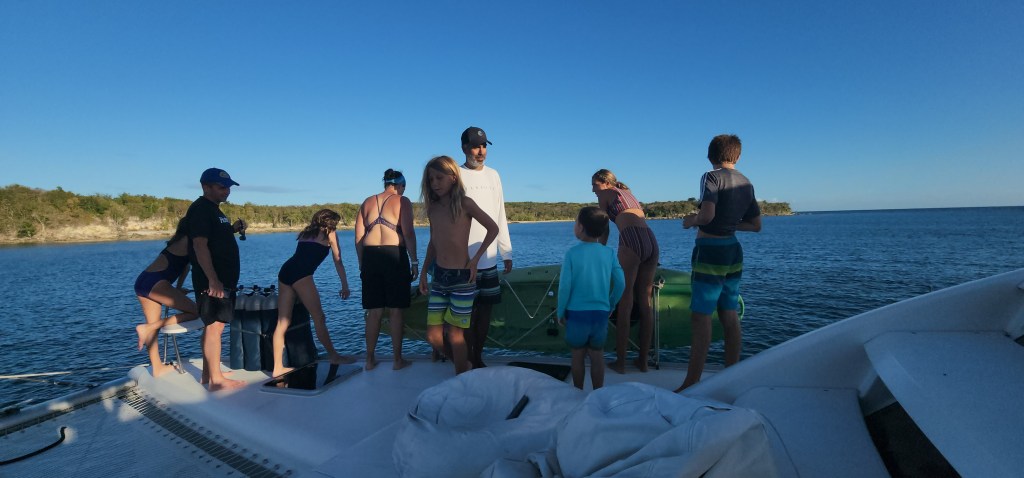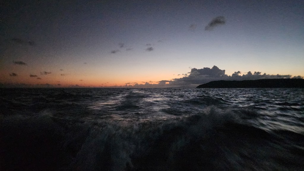 We moved over a to Sun bay to put us closer to the Mosquito Bay or Bioluminescence Bay. We got anchored around 11:30am and then met our new friends from church the Larsens, Rob, Cindy, Sydney, Savanna and Remington. It took a little bit for the kids to warm up but then they had a blast. They were kind enough to bring pizza and chips and sodas and oreos. The kids were in heaven. There was enormous barracuda under the boat. At first the kids were nervous to swim but slowly forgot about him. There youngest was loving the idea of driving the boat so we took them out and over to just outside the bay and anchored and then dinghied to our own private beach just to the right before you go to mosquito bay. It was sand on one side and rocks and tide pools on the other. It was so fun to share the day with friends. We sailed back and re- anchored at Esperanza. The kids jumped off the boat and swam some more and then we took them to shore and got ready for our night expedition to the bio bay. We left at dusk, around 6:30pm. It was a little nerve wracking to be heading out to open sea at dark but we prepared ourselves as much as could. We took the ditch bag, flashlights, life jackets and extra water. It was about a 2 mile ride. It was also really calm so that helped. The dingy ride was smooth. It gets very shallow and narrow as you come into the bay. You also have to turn you motors off so we paddled in. It slowly became more and more bright and beautiful. As you paddled through the water it just illuminated. It was like nothing else I’ve ever seen. We paddled around and tried to overhear one of the tour guides to get some info. Somehow slowly the kids ended up getting in the water. It was very cool. Cale challenged everyone to sit in silence for one minute, one turned into five. There was no one around and it was so calm. The bay was absolutely still. It was my favorite part. It was impossible to get pictures or video but trust me it was awesome.