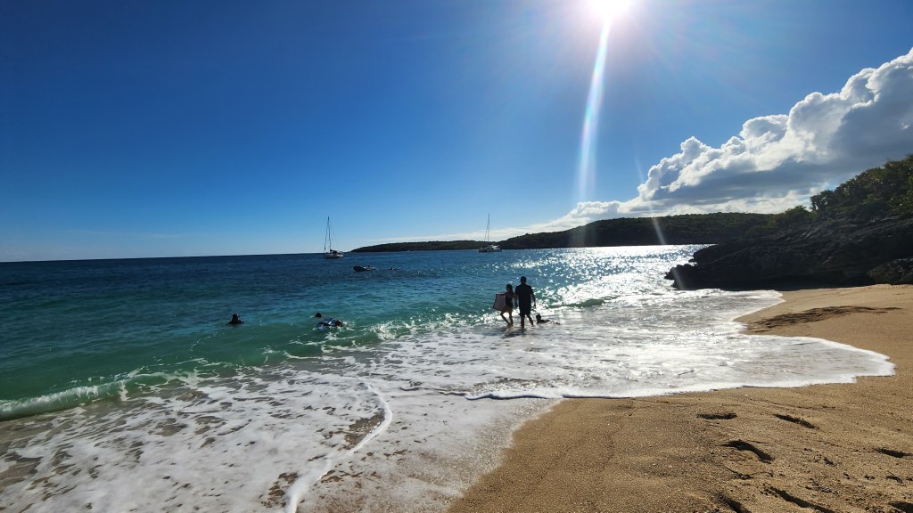 Our dinghy ride back went great. The water was so calm and we were surfing waves. I’m glad it was uneventful. We were undecided when we went to bed whether we would stay another day in Sun Bay or head to the Isle de Grande.