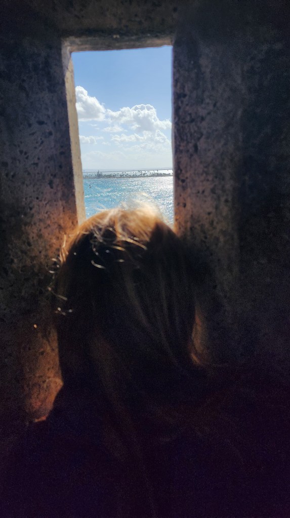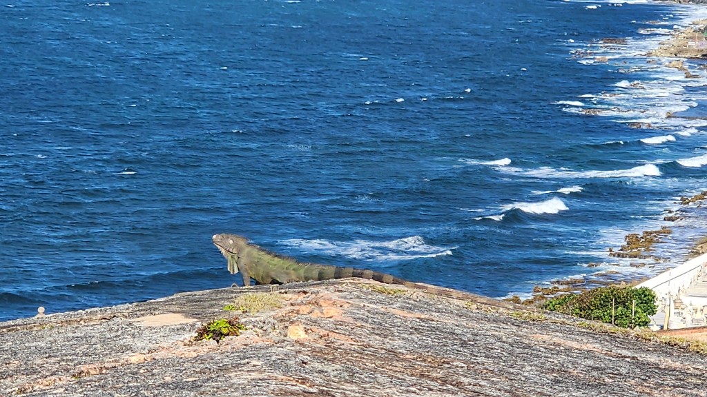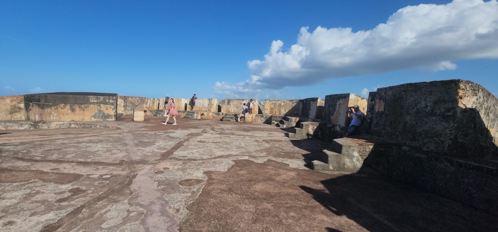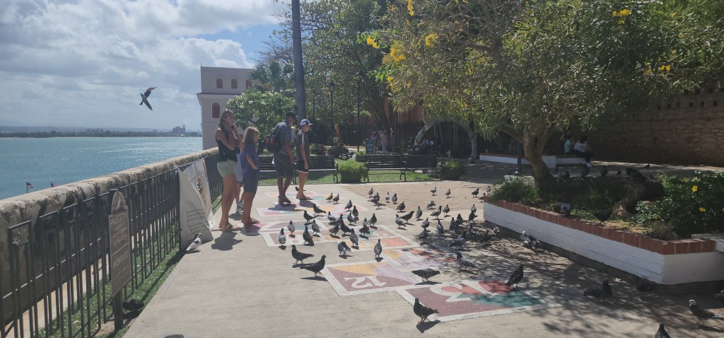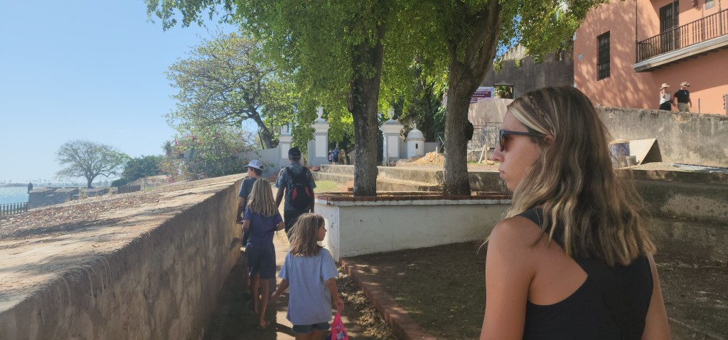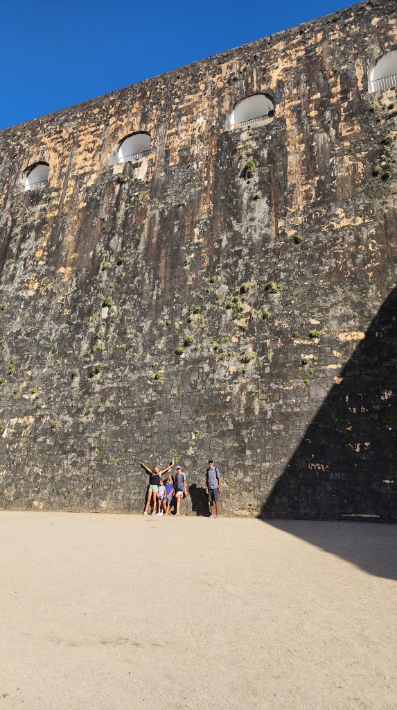 I thought for sure the chickens, cats and iguanas would be on the grass before the fort (they have been there both other times we came here), but they weren’t. We spent about an hour or so at Fort Morro, Castillo San Felipe del Morro. It was fun to show the kids. Of all the forts I’d rank this 2nd. It’s very cool, but it was weird to be at one with so many tourists. It’s also been weird to be somewhere so American. The fort is a national park so it feels very American. But also just all the American food options and shopping.