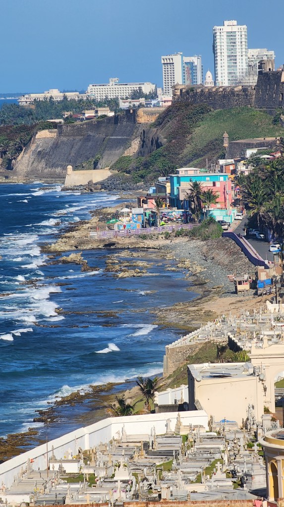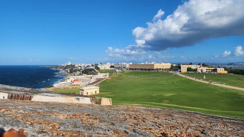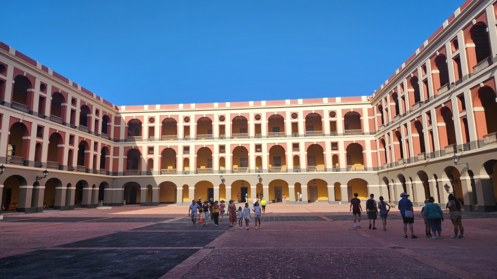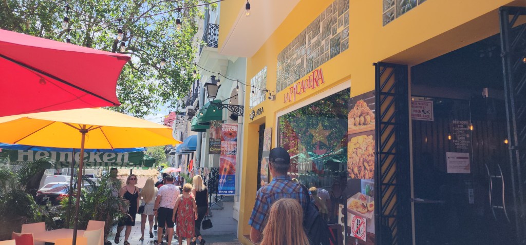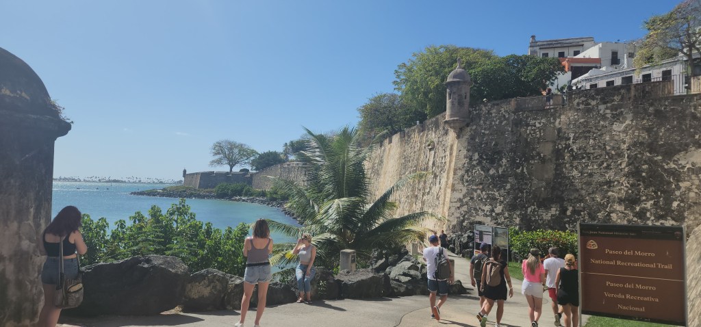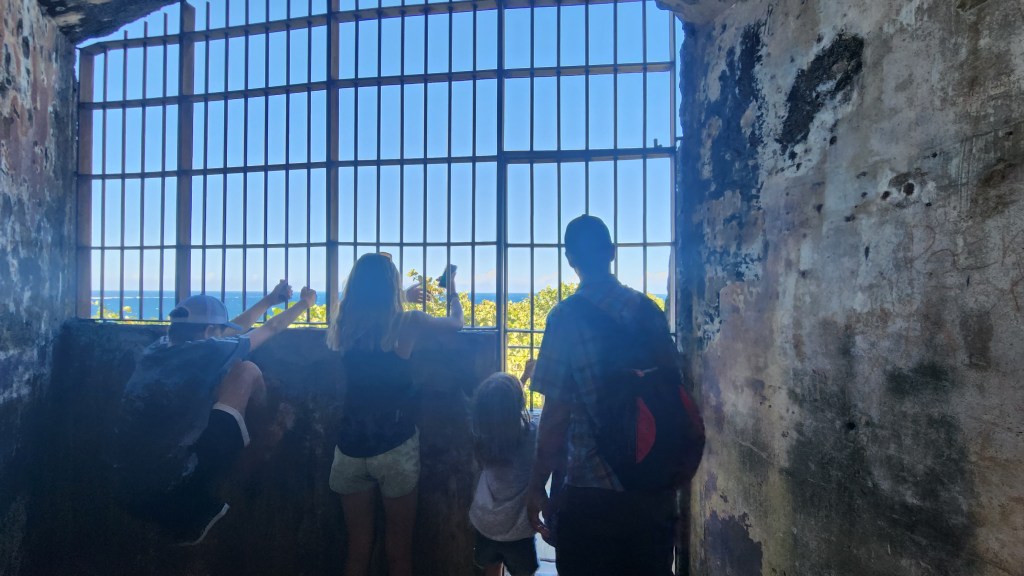 I thought for sure the chickens, cats and iguanas would be on the grass before the fort (they have been there both other times we came here), but they weren’t. We spent about an hour or so at Fort Morro, Castillo San Felipe del Morro. It was fun to show the kids. Of all the forts I’d rank this 2nd. It’s very cool, but it was weird to be at one with so many tourists. It’s also been weird to be somewhere so American. The fort is a national park so it feels very American. But also just all the American food options and shopping.