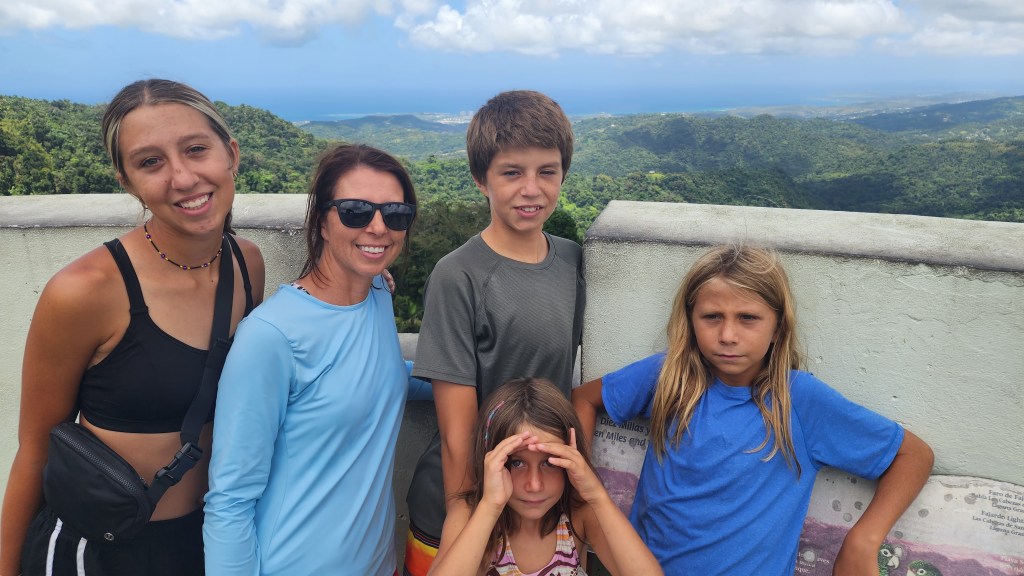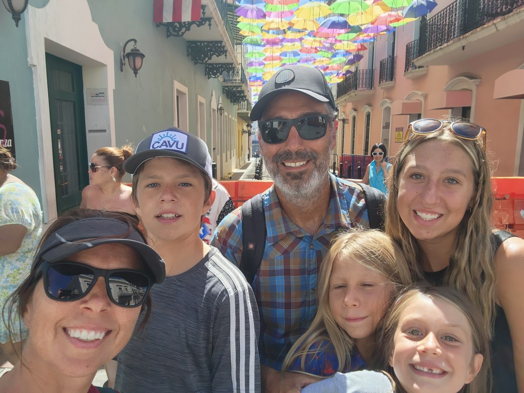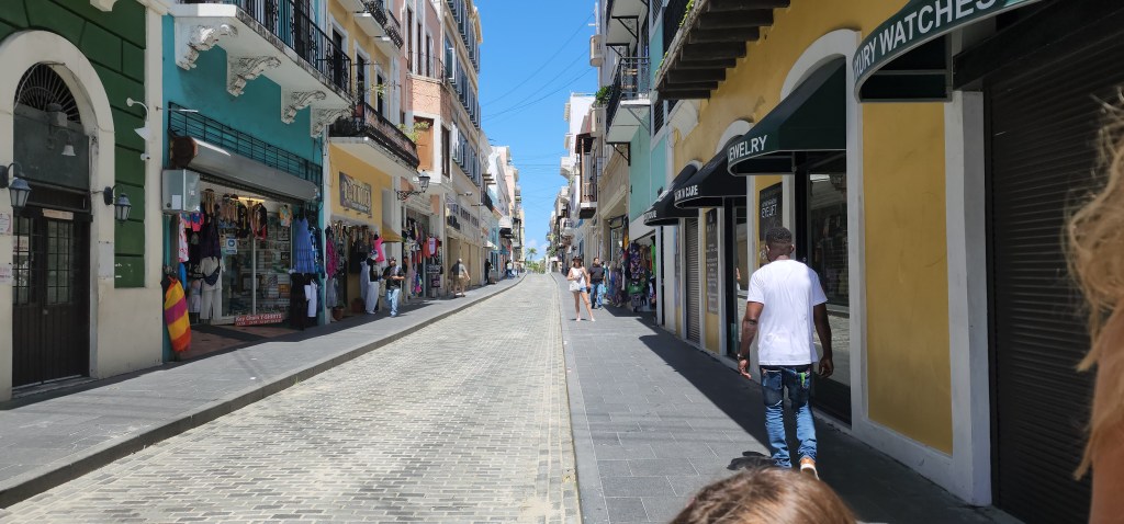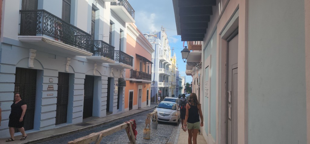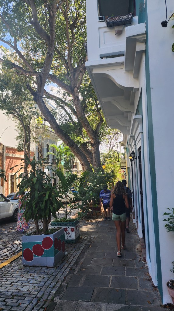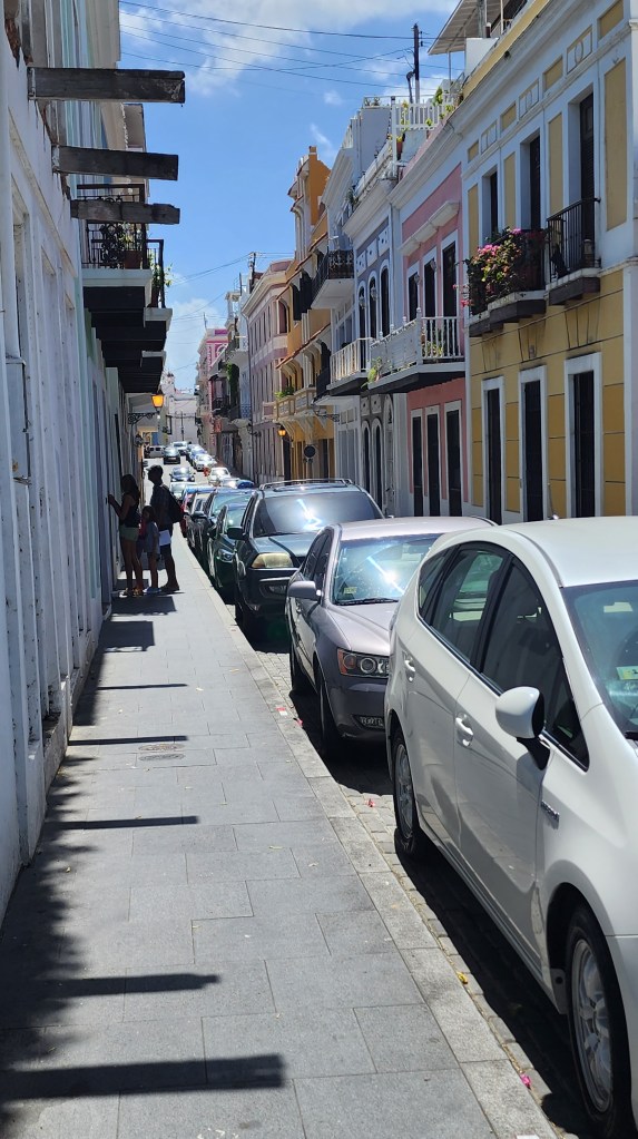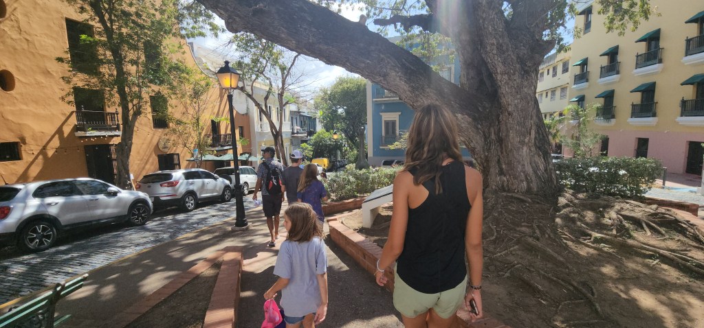 We limped through and got our stuff together and went and met Cale to head out around 12. Our first stop was San Juan. We parked in old town and walked some of the sites. We got a map and some helpful info at the tourists office. It’s a very cool downtown. The houses are colorful and the architecture is rich. The streets are almost all cobblestone. We went to the city gate, walked the wall, umbrella street, the chapel. These were all places Cale and I came on our honeymoon and a 1 year ago when we were on our way to buy the boat. It was pretty surreal for me. I remember having so many thoughts and feelings knowing that if all went well we’d be back here with our kids I’m the middle of our trip. It seemed so obscure at the time. To have it come to fruition is pretty unbelievable and amazing.