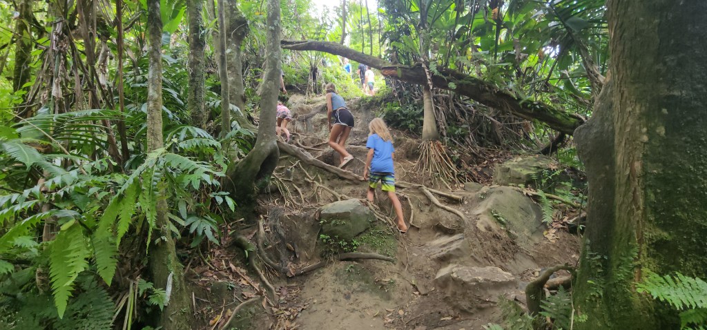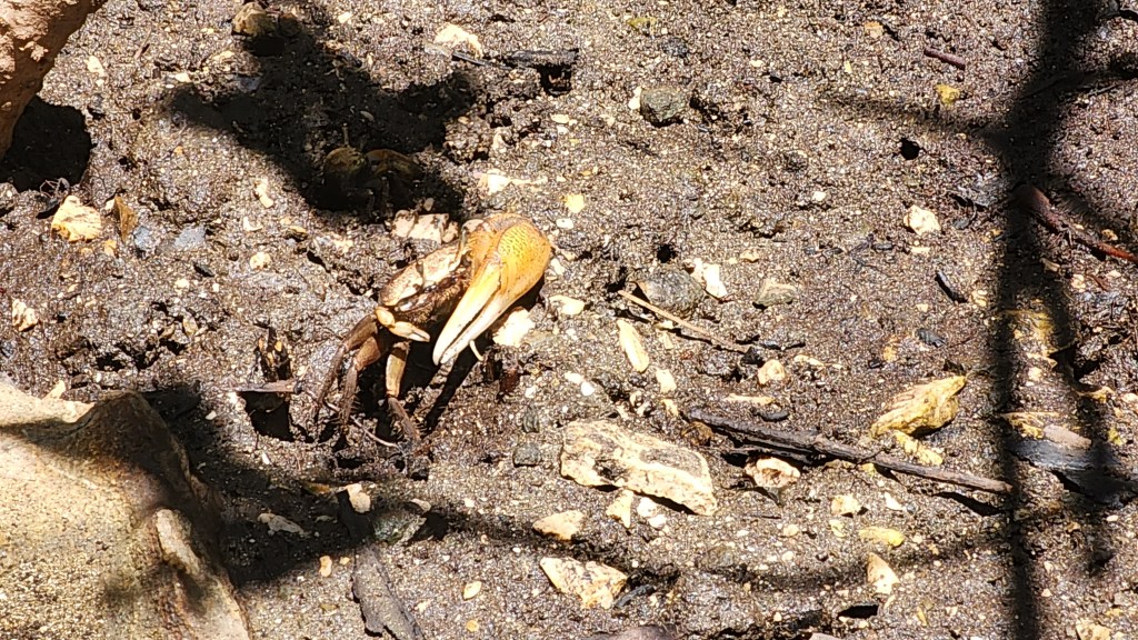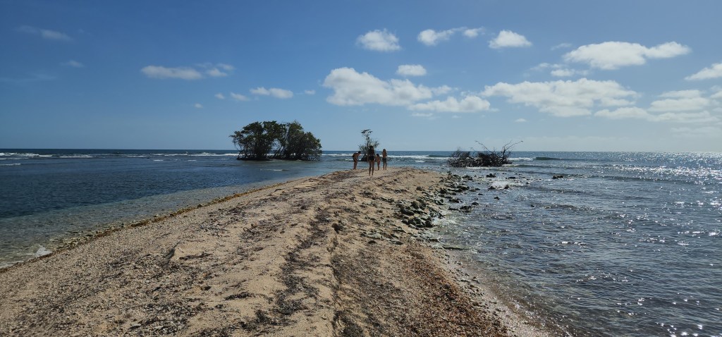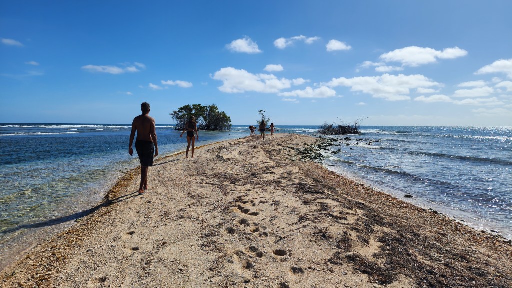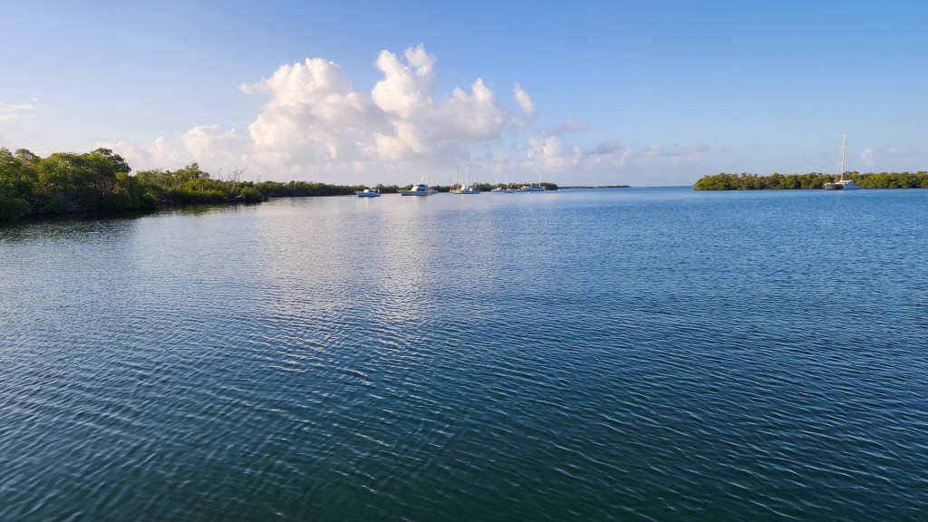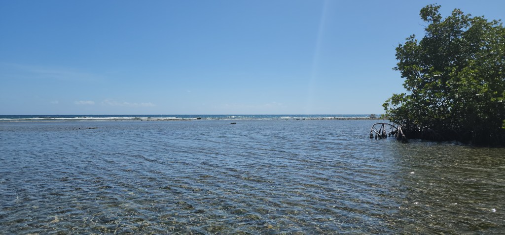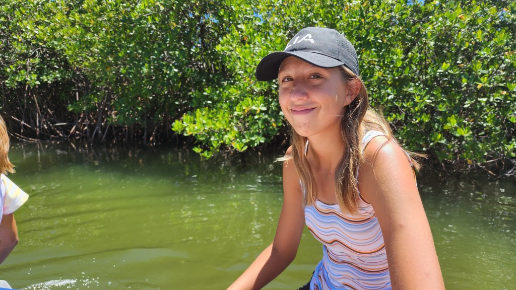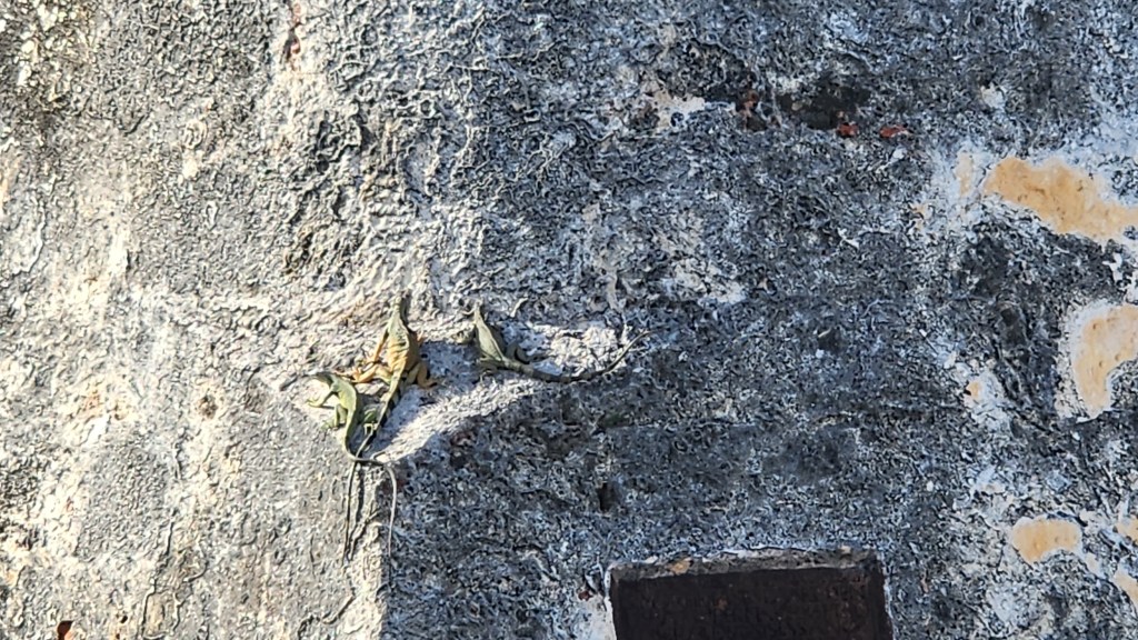 What a difference 24 hours makes. We were planning to return the car and go to Isle Caja de Muertus, then a day at Boqueron and onto DR to meet Holly. Sadly, they had a passport issue and weren’t able to make it to DR. The good news is they are re-routing and coming to Puerto Rico. We spent the morning doing school. Kira saw a manatee off the side of the boat and we watched it surface a few times. Cale went to return the car. He had a work call and I took the kids to explore a mangrove inlet. It was really cool. We ended up at a big area that had been cleared. There was a road with a bridge that had collapsed that apparently was used at some point. There were tons of crabs that had one big claw they carried around. They were pretty small but all over. Just as we got out of the bay we saw something that looked like a muskrat or otter in the water. We finally realized it was an iguana swimming across the bay.