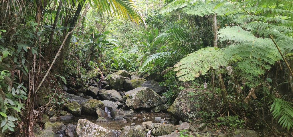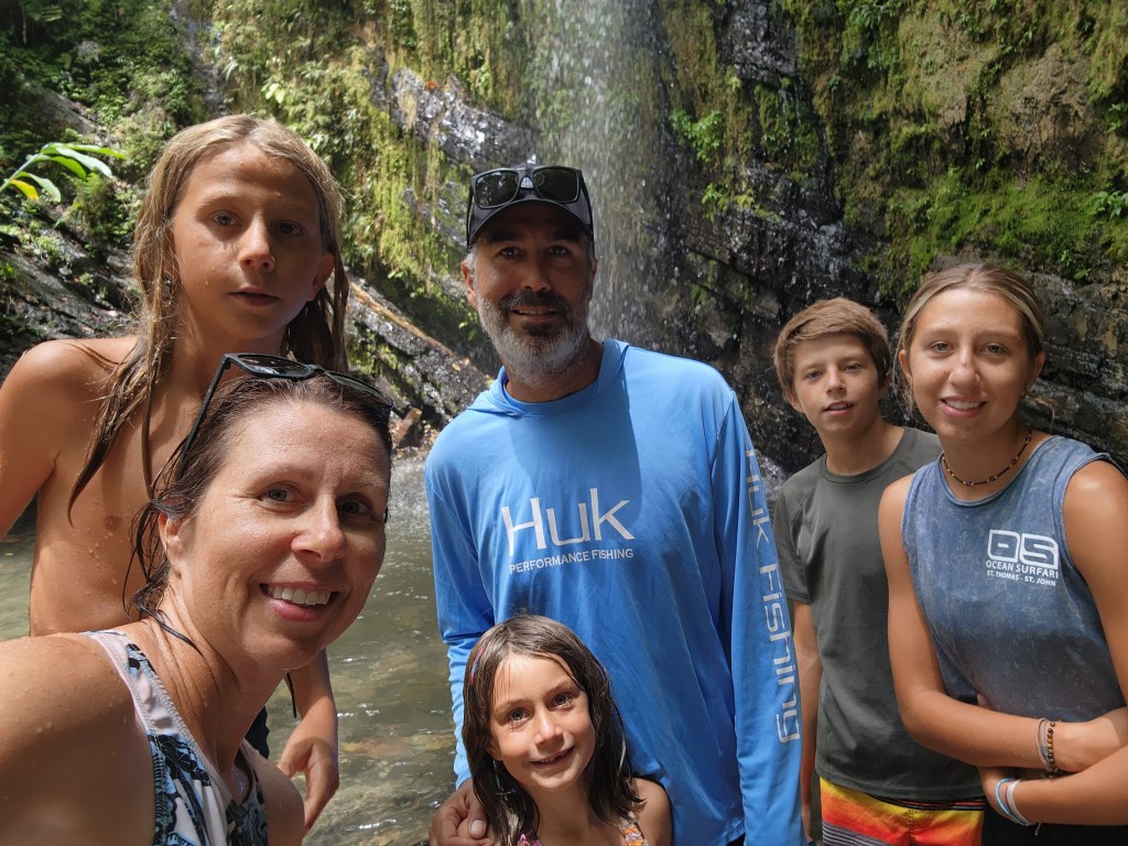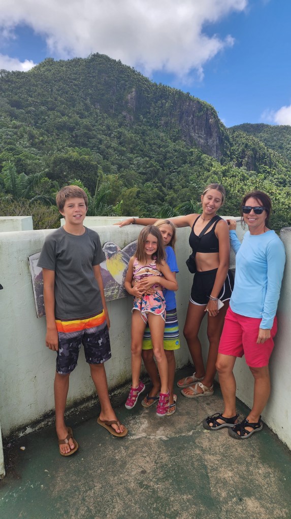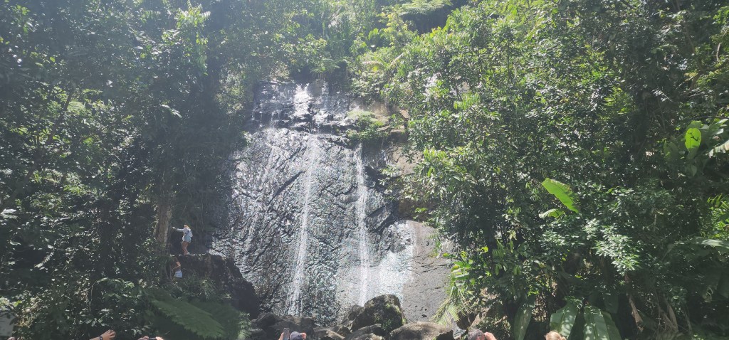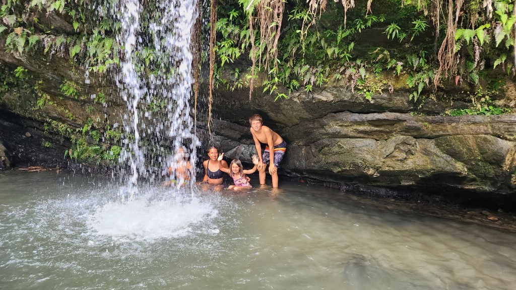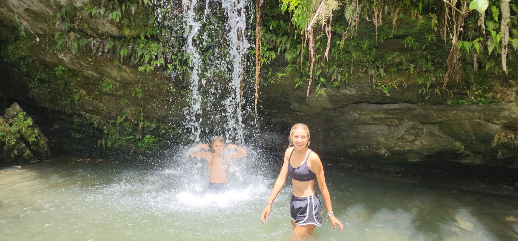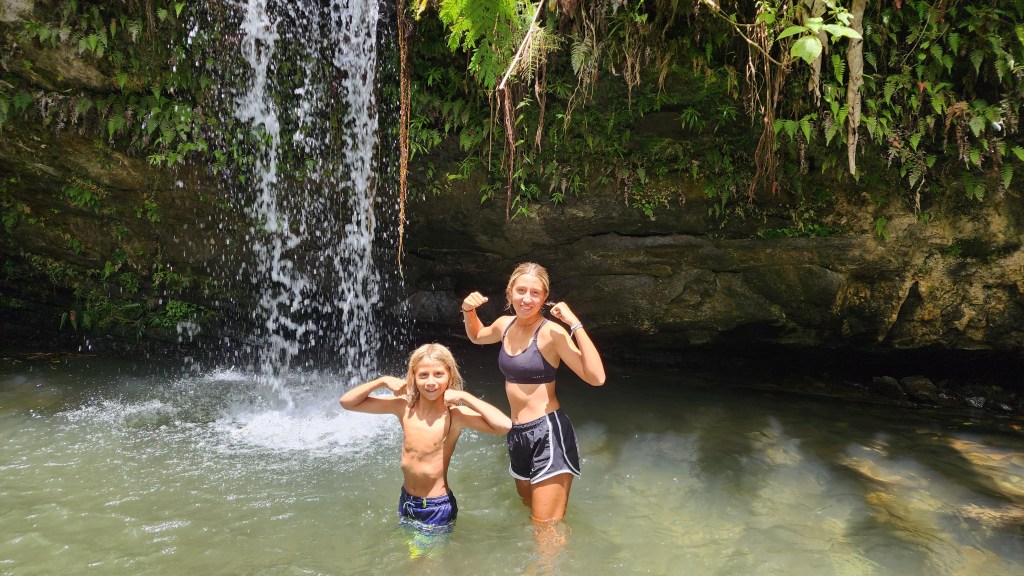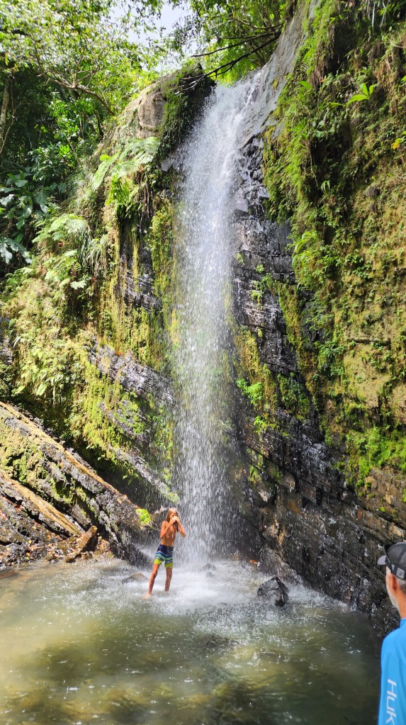 4-20 We tried to get a somewhat early start but everyone was dragging. It’s hard to do 2 big land days back to back. We got going around 9 and then realized it was a hour and a half drive to the Yunque national park. By the time we grabbed breakfast and got there is was 10:40. Our reservation was 8-11 so we made it just in time. The park is very beautiful and very jungly. We hiked to the waterfall pools. It was great! It was so refreshing, even though the water was cold. Everyone ended up getting in except Cale. There was quite a few people there, but it’s a very beautiful place. There were 3 or 4 different water pools made from the waterfalls. Cade was in heaven. Next, we checked out the Colorado swimming pools. Its a man made pool but no longer in use. It was cool but also kind of weird. The kids thought it was weird you couldn’t swim in it.