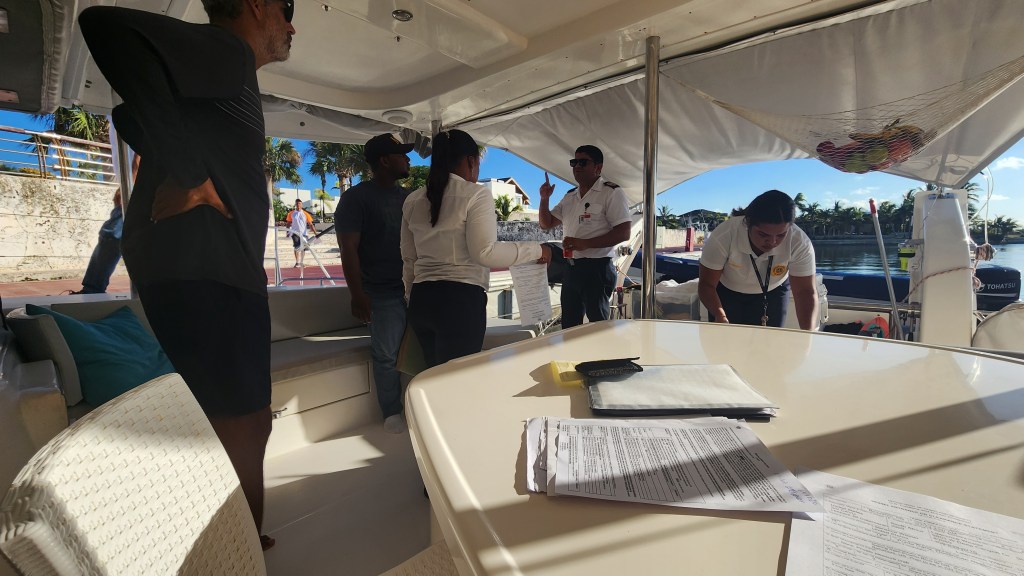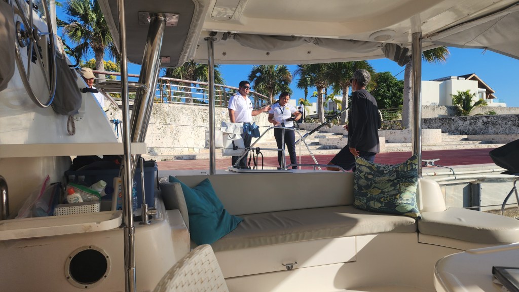 We are in Punta Cana, at Cap Cana marina. It is really fancy and nice here. I wasn’t expecting it to be like this at all. We had to wait for all the branches of government representatives to come check us in. They actually boarded our boat. We had to sign forms and then two of them walked into every room. It was very different then any other check in we have had. We walked and figured out our rental car and then drove out of the marina area to the Blue Mall. It was a very fancy mall area that caters to all the resorts. I just get the sense this island is divided by halves and have not.
