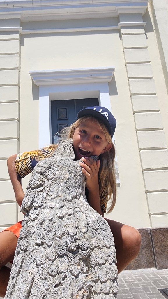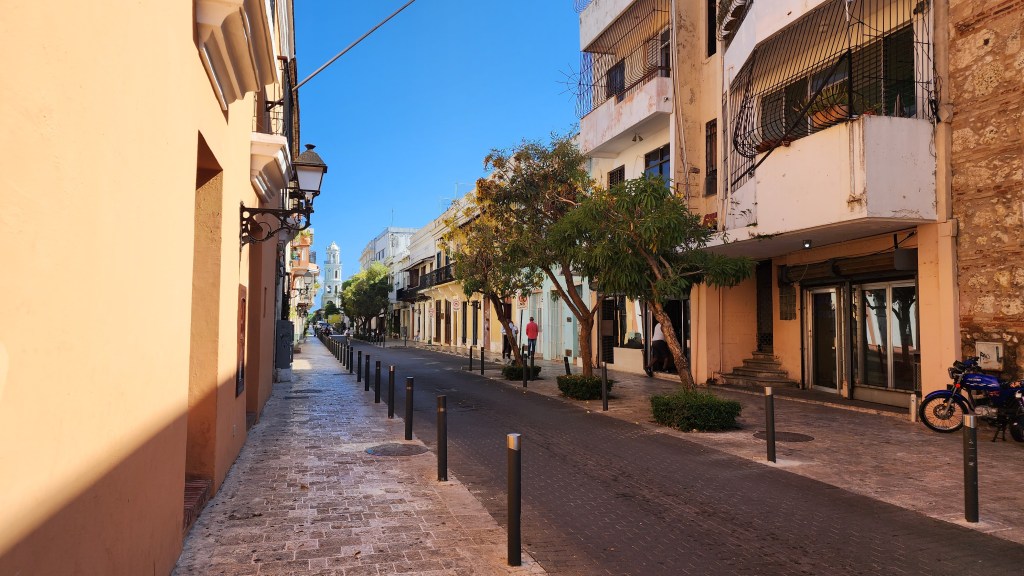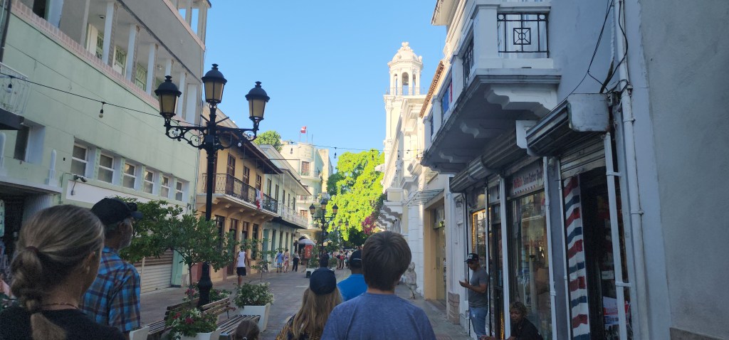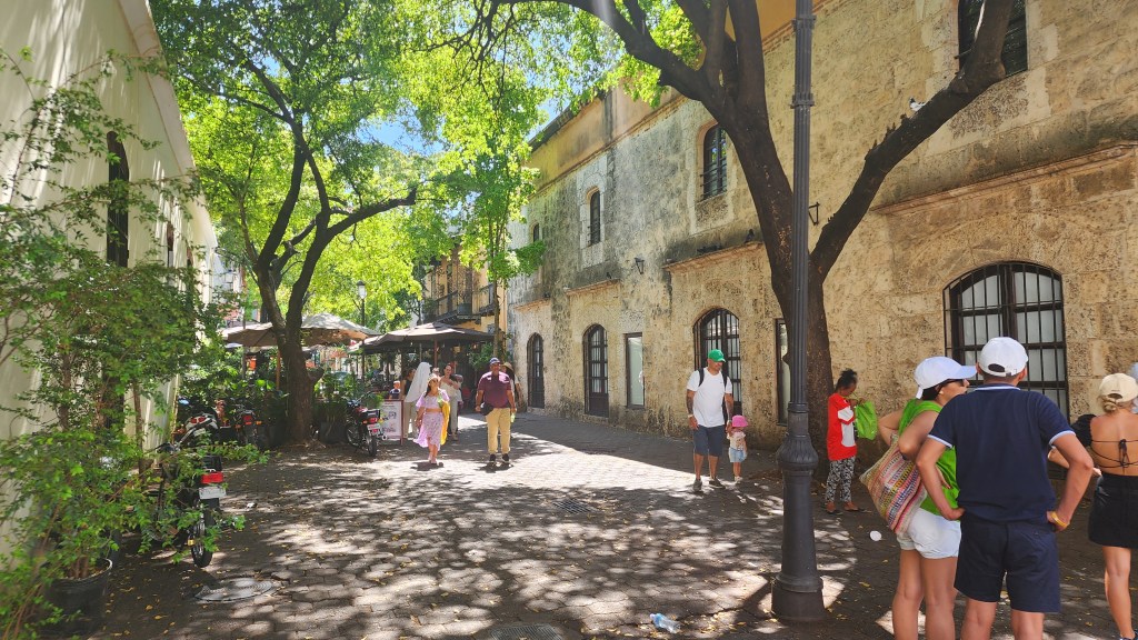 Then, we stopped by and learned about the gargoyles. We saw the 1st catholic church in the Americas, the first road in the Americas and the Clle de Damas, where Christopher Columbus and his wife’s ladies walked. Also, Christopher Columbus’s house.