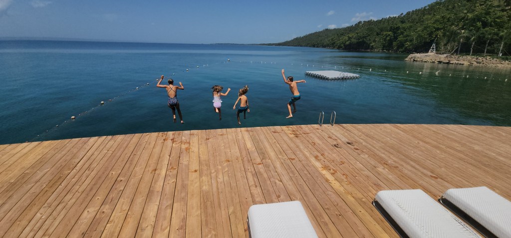 5-9 Kelsey had a bad dream and was in our bed during the night. I’m not sure if it was sleeping 3 in a double bed or what but I woke up early, around 5:30. I decided to get up and get going. My day mostly consisted of lots of laundry, 7 loads. It’s not too bad of a walk to the facility, just hard to remember to go back and switch it. The kids did school and cleaned the decks and sides of the boat. By the time they were done it was close to 3 so we decided instead of going to a beach to go for a swim at the pool. The kids were so much fun at the pool. They paired up and made up synchronization routines. Cole and Kelsey were one team and Cade and Kira were the other. Then they switched and Kira and Kelsey and Cole and Cade. It was fun to see them work together and how their different personalities come out.