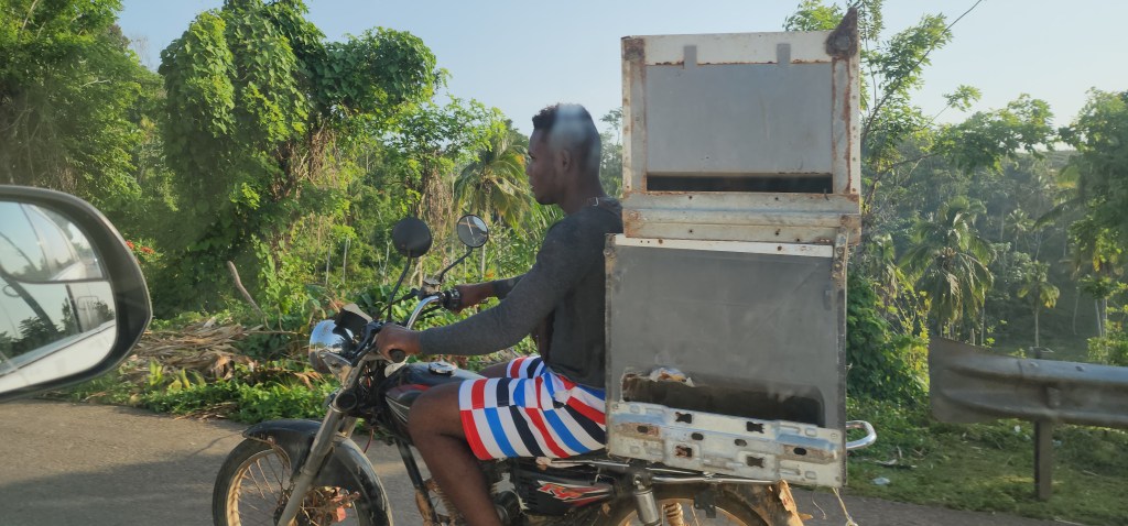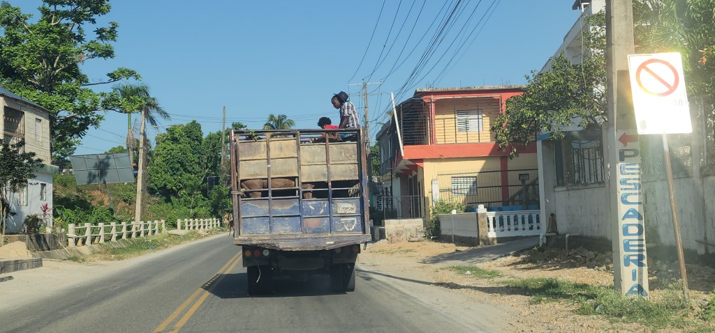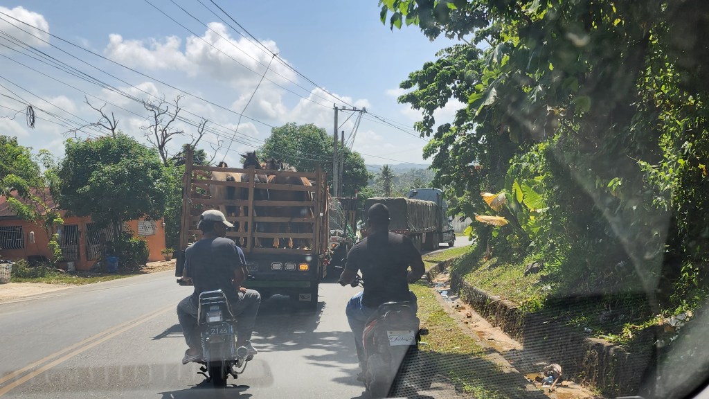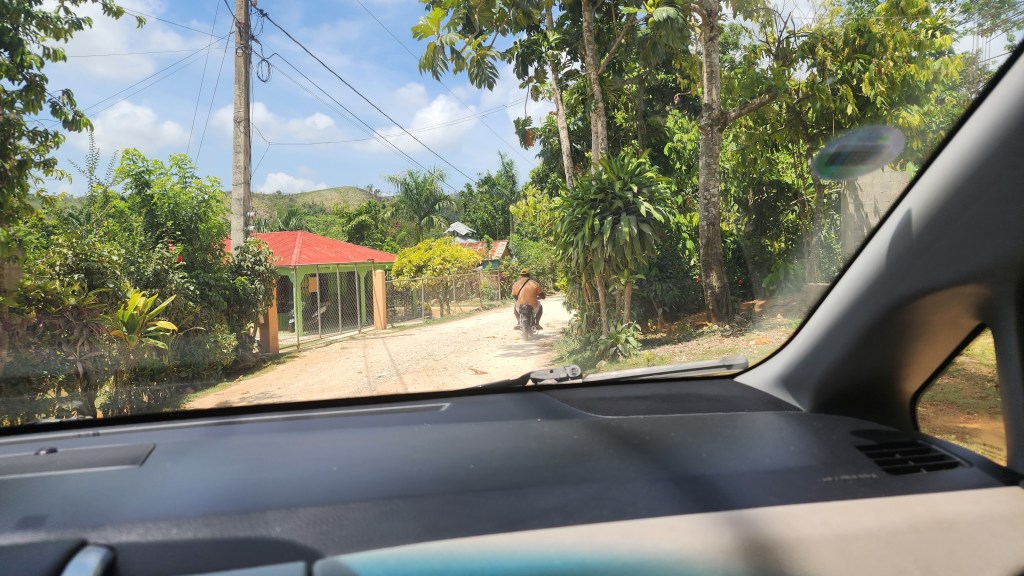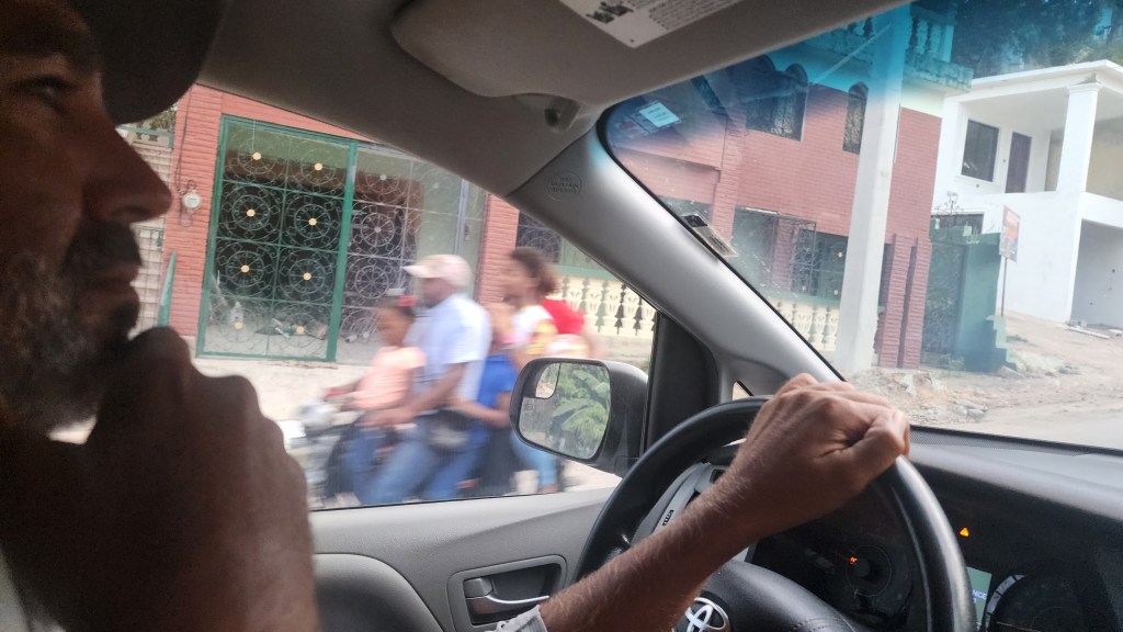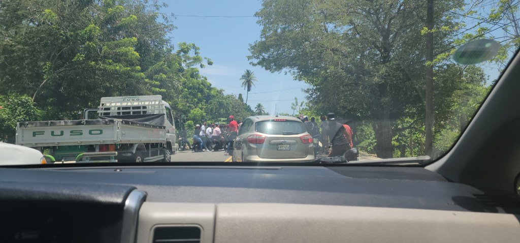 The church was in a very nice building. The people were warm and friendly. They seem to speak a little slower here then in PR. It was Sunday school. There was one guy that seemed to dominate the conversation. Since it’s hard to follow content it’s interesting to just sit back and read body language. On the drive back we came upon a group of people in the street stopping traffic. We realized pretty quickly they were doing motorcycle street races. After waiting a few minutes all the people quickly dispersed and zoomed away and let traffic through. There were people quite a ways down the road watching.
