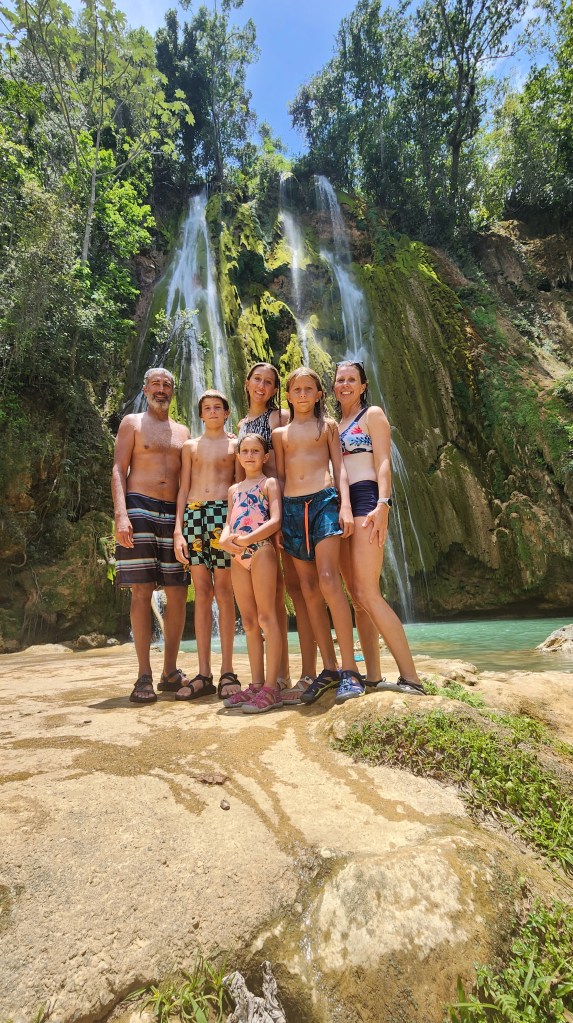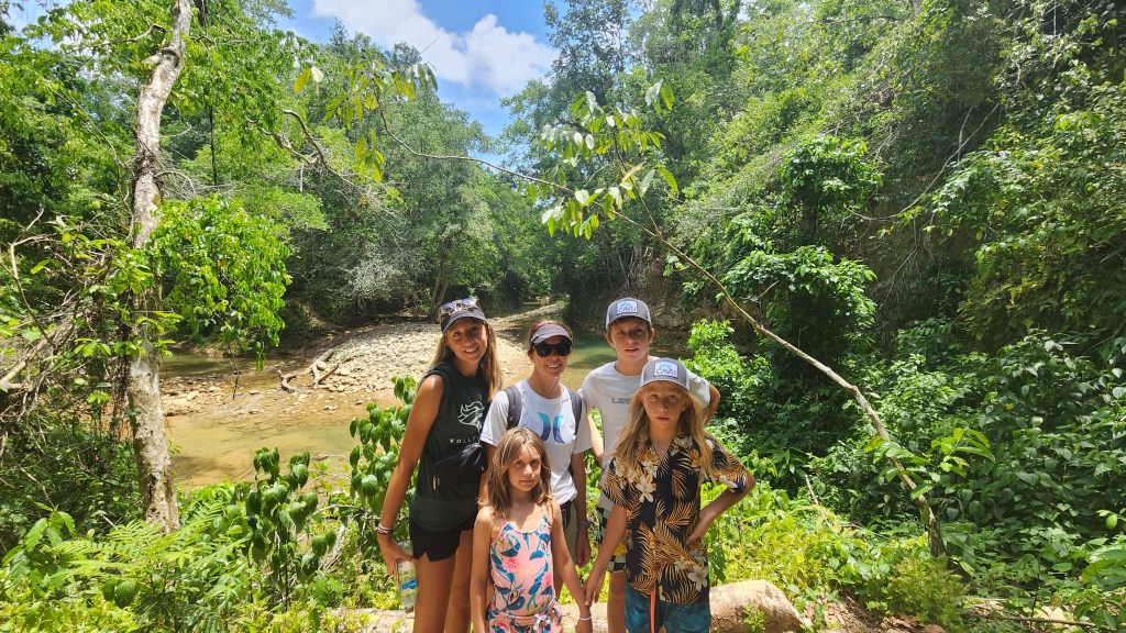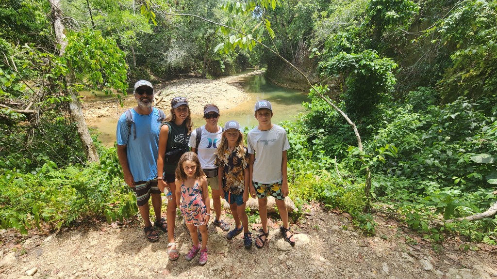 5-10 We did the Samana zipline today. Everyone was so excited! Kelsey was super nervous. We got there and went to get signed in when we realized we didn’t have enough cash so Cale had to drive back to Samana for cash. Cole went with Cale. The rest of us stayed and waited. It took about 30 minutes. The exchange rate is about 54 to 1 so its hard to keep track. We get like 10,000 pesos and think we are good but that’s only about $185 US. While we waited Kelsey had to go to the bathroom. It wasn’t flushing so I took a hint that the bucket of water next to the door was for the toilet. I took off the lid and there were 5 or 6 little frogs hanging out. It took me by surprise.