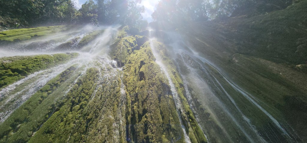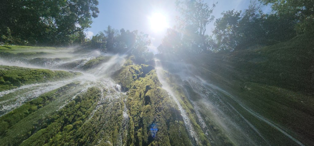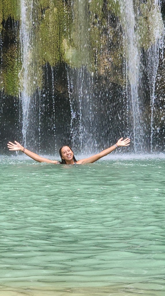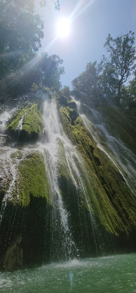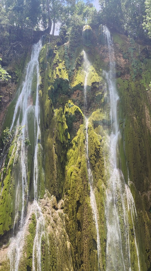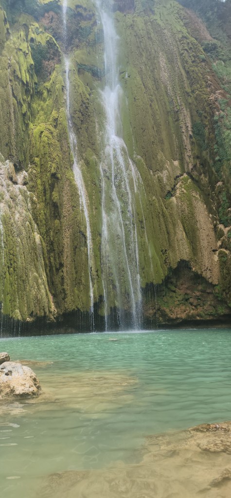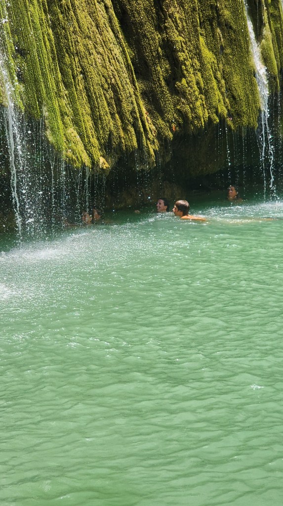 The second falls is un grande. It was amazing. The face of it is bright green and it is so beautiful. We swam and went behind it and all over. Our guide was so nice to take lots of photos for us.