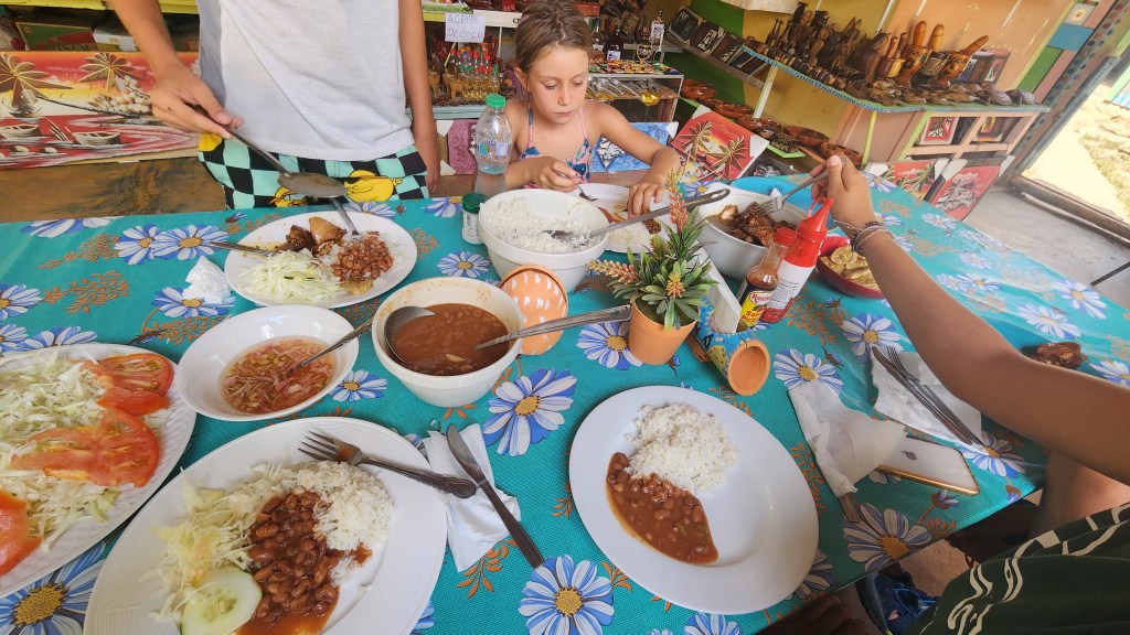 We thought about going to Rincon Beach, but decided to get lunch at Jose’s in Samana instead. We’d heard it was good, cheap food. It wasn’t amazing but the cheapest meal we’ve had so far. 150 pecos for a plate which is 3 dollars. We told the kids to get excited to eat there again.
