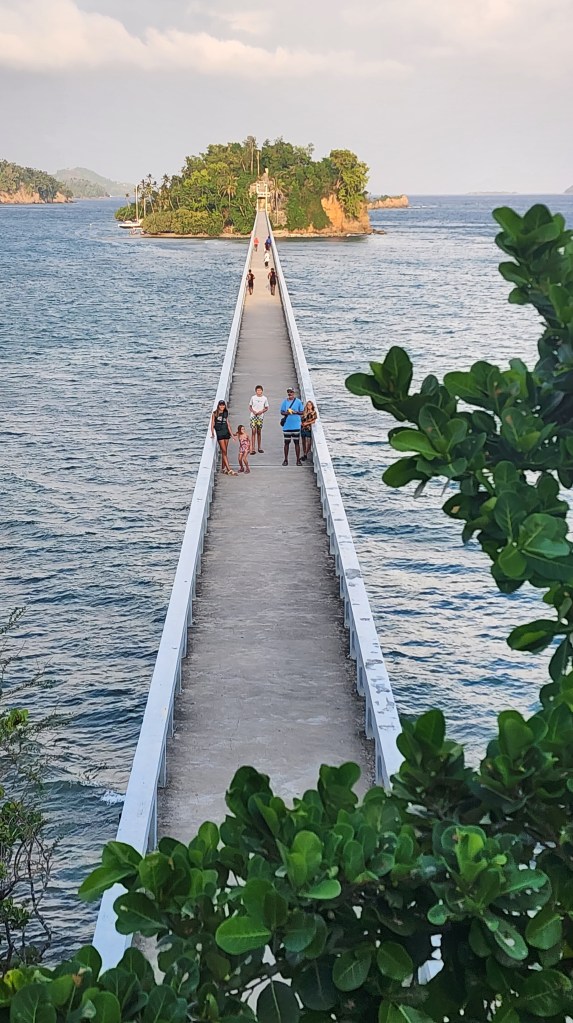Next, we went to Samana. We stopped at a fruit stand and got a watermelon and the cutest, little pina. As we were standing there mangos were falling from the tree and the fruit stand guys gave them to the boys. They were so excited. We took them all to the bridge to walk and eat our mangos. We got hassled by a women to pay her to park. We gave her a little when we left, but it was a total scam. I also bought a bracelet.