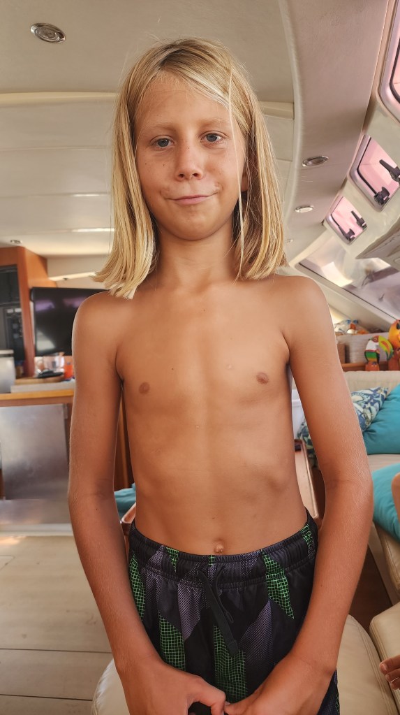 The boys had left to go back and a new family walked up. They are 2 girls 13 and 10. We chatted for a while. They have been in a similar path as us. I’m shocked we hadn’t seen them until now. They are also headed to the US. We had dinner and then the kids invited the girls to play. They played bottle bash, then volleyball, and then played games in the pool room here. A weird thing happened. As Cale and I were walking back to the boat. All the power went out everywhere. It was weird how dark things got. It only lasted about 2 minutes, but it was strange. The kids came back to the boat and played more games with their new friends.