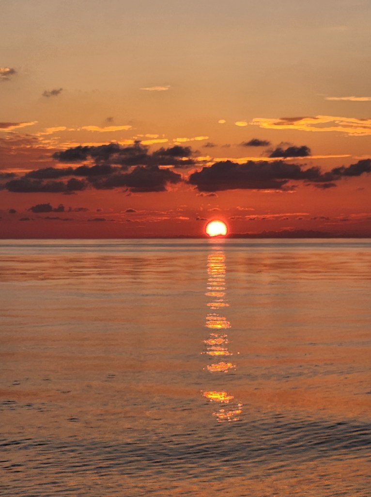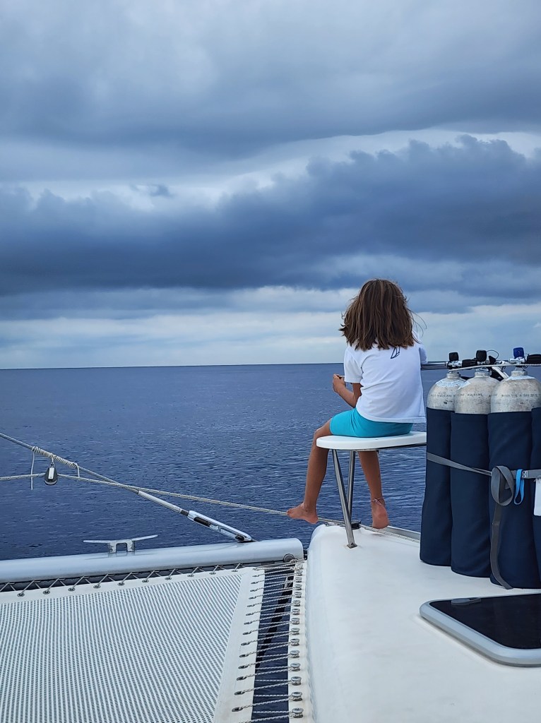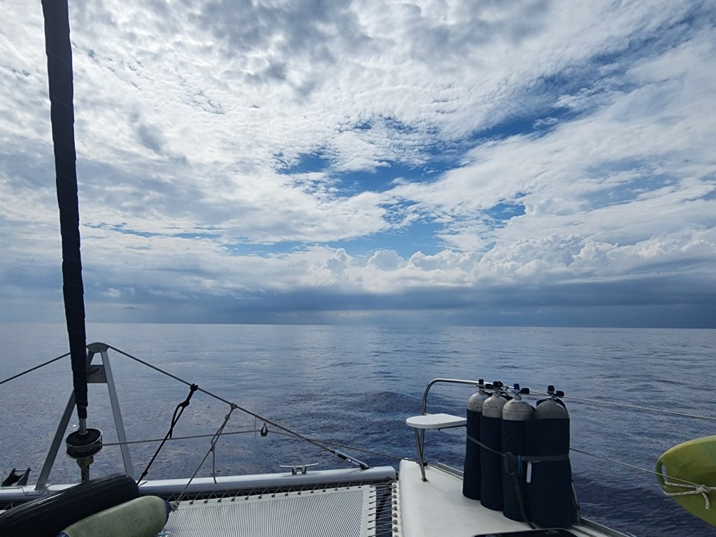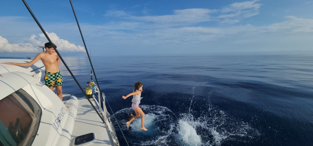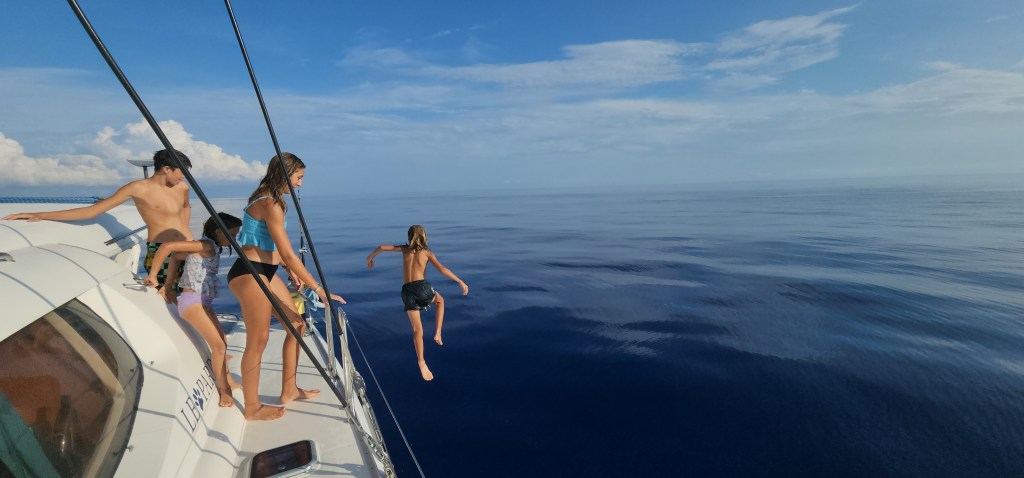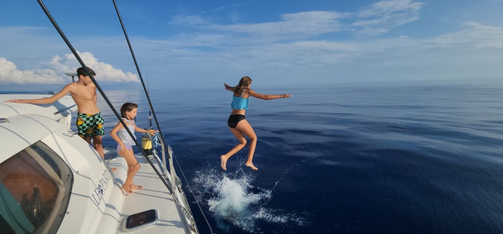 We headed out around 3pm. It was so calm the entire way. Just unbelievable. It felt like a lake. This allowed us to be a lot more productive on passage then normal. We did a marine biology lesson, played uno, and kept up on keeping the boat clean (when its rough the boat is usually a wreck once we stop). We stopped in the middle of the ocean and jumped in the water for a break and just because it was sooo clear. It’s crazy to think it’s 7500 feet deep and there is just nothing you can see. We were all a little nervous to jump in, but it felt very refreshing. We had dinner and then watched the sunset and did scriptures. It was a nice day. The water is absolutely so amazing and the whole day was so peaceful.