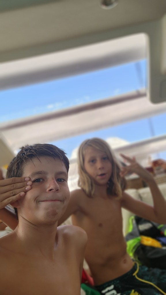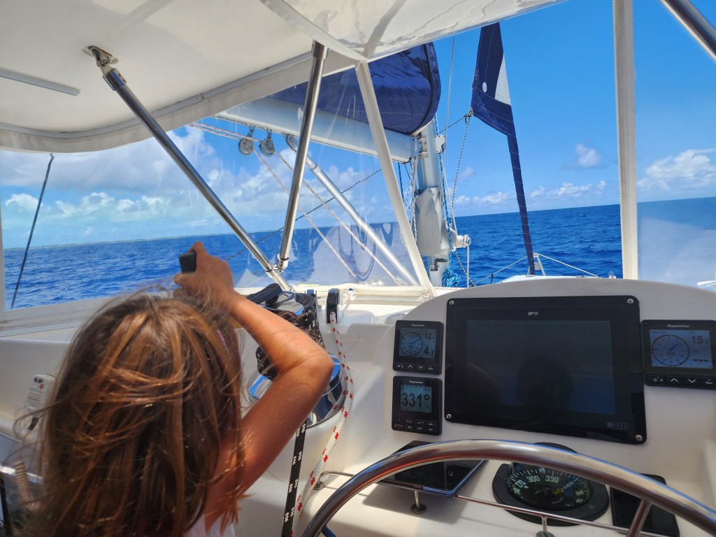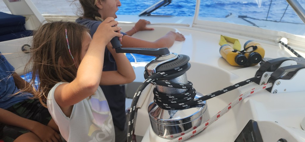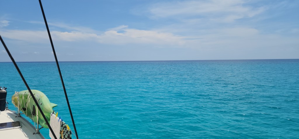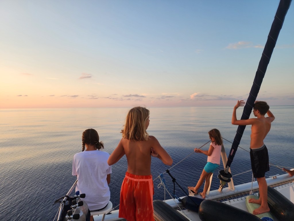 The shift schedule didn’t quite work out how we planned. Cade didn’t wake up for his shift, so Cale did 10-2. I came up at 2. About 4, Cade stumbled up and slept on the bench with me. I didn’t think I’d be able to go back to sleep so I didn’t wake up Kira for her shift. At around 7, I woke up Cole. Him and Cade did a shift together for awhile and Cale came up shortly after. The rest of the day is just a rotation of looking at the water, moving places to sit, filling water, trying to eat, killing time, and catching up on sleep. The kids had a record amount of screens. I had a bad headache so didn’t have the energy to have them do other things. They took a break mid-day for a while and we sat up front. It was really beautiful. Cole caught a mahi-mahi. We were so excited, but then not as much when we had to kill it. We got a Marine Biology lesson done. Thankfully, no storms caught us although we could see some in the distance. As we got close, around 10pm, there were some fishing buoys so I went out front and watched. There were tons of flying fish. I could also sometimes see fish at the bottom. The water was really clear. There was also so many mosquitos. Cale had shut the doors, but not before a lot had gotten inside. We got the anchor set pretty quickly. It was a nice sandy bottom. We are at Great Inagua, Matthew town in the Bahamas!!