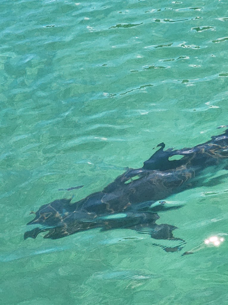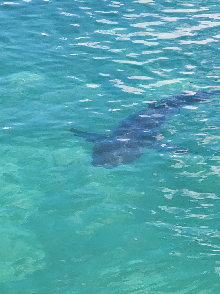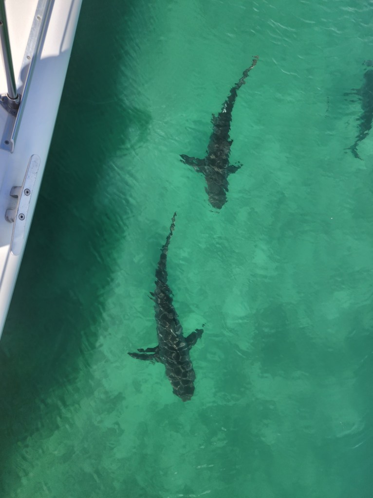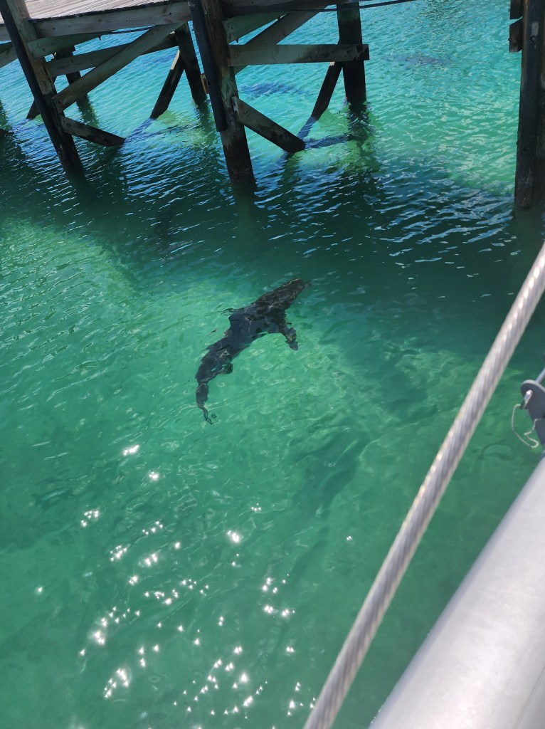 We got here about 3pm and went to get fuel. The deck hand was very helpful. The first thing we noticed were the sharks. They hang out all around the docks because of the fishing boats. They know the boat engine means food. They were big. He said they are bulls, reef and nurse sharks. We went into the little store after and he told us about snorkeling at the Big Hole and mangroves. He told us where not to snorkel because it was where the sharks wait for the fishing boats. We first snorkeled at a small private beautiful beach. We were all a little more cautious getting in the water then normal. I mean we had just seen about 20 sharks in the water not that far away.
