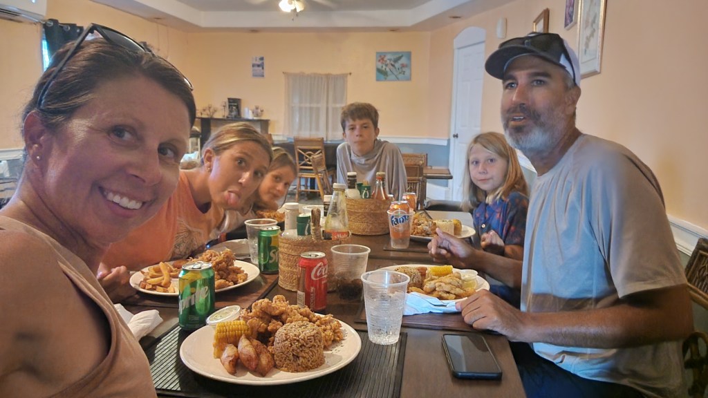The kids did a lot of school. It was overcast, but hot. We ran to AC most of the day (which we haven’t done much at all). Cale cleaned the cockpit. By the time we got done with school the kids just wanted to hang out. We had dinner and watched the Chosen. About that time, we started seeing lightening. Within 30 minutes, it was the kind of lightening that lights up the sky. The storm above us and the storm below were both growing around us. It was pretty intense for a while. All the kids came into our small, hot room for a while. I could hardly blame them. The lightening was pretty crazy. It lit up the entire sky. We all went to sleep knowing an even bigger storm was coming. It passed over us, but we all slept through it so must not have been that bad. I said lots of prayers and if you saw how the radar looked and how it somehow missed hitting us directly I was saying a lot of prays of gratitude as well.